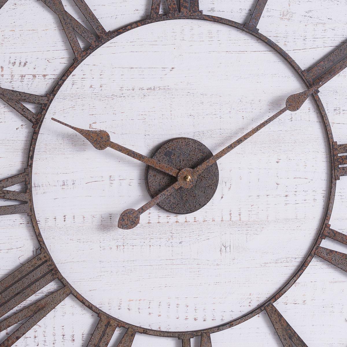 This is the Rustic Wooden Clock With Aged Numerals a whitewashed backboard and aged metal work to deliver a rustic piece that will appeal to custiomers looking to curate a country-inspired look. Particularly well suited to kitchens.