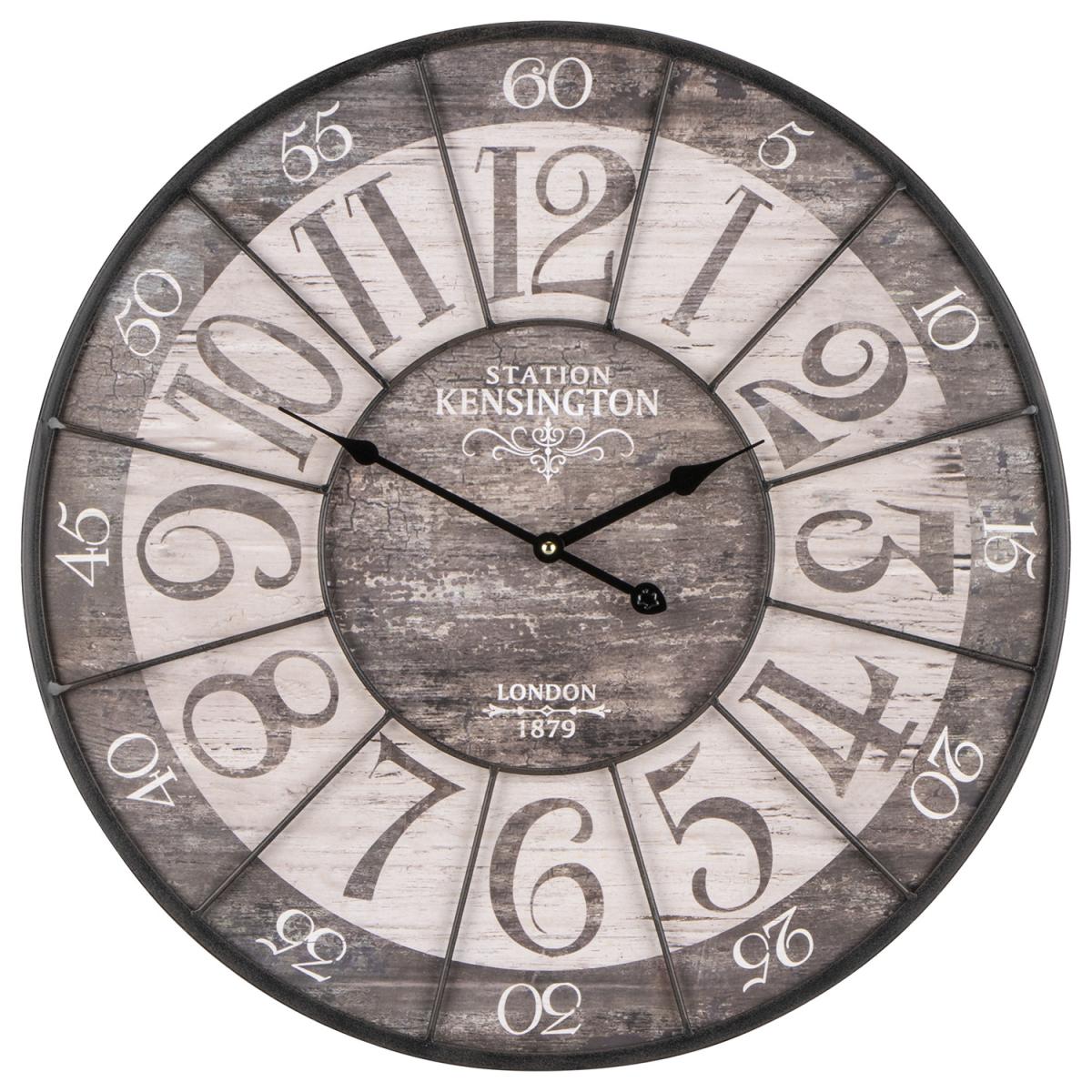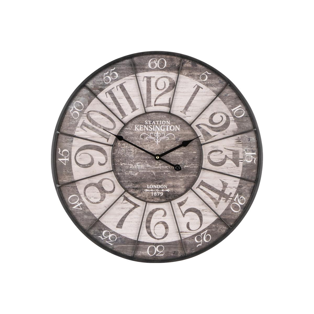 Constructed from metal with a wooden face and aged appearance, this Rustic Wooden Kensington Clock is an attractive and functional accent piece to a variety of styles from industrial and urban to rural and vintage. Tracking hours and minutes with two rows of digits and two black dials, this circular clock is perfect for any room or hallway.