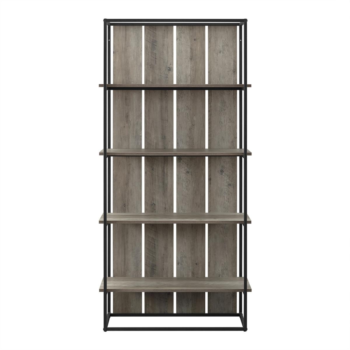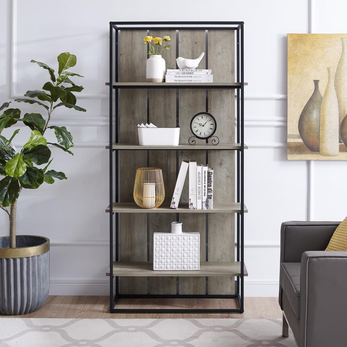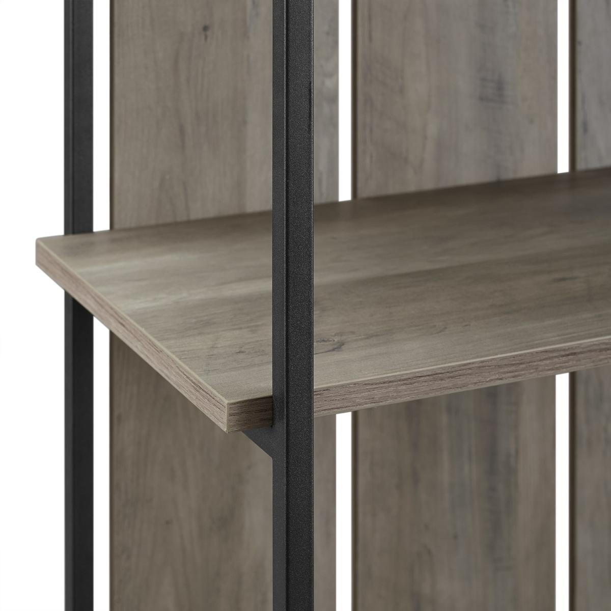 Introduce a rustic, modern farmhouse style with an industrial influence by featuring this bookcase in any room of your home. The plank style boards in back are a perfect addition to the design. With a metal frame and high-grade MDF, durable laminate construction for a sturdy design. Use in your hallway, living room, bedroom, or home office to add personality to your space with décor of choice. Whether you organise photos, books, candles, plants, or other décor, this bookshelf will provide the extra storage space you need.