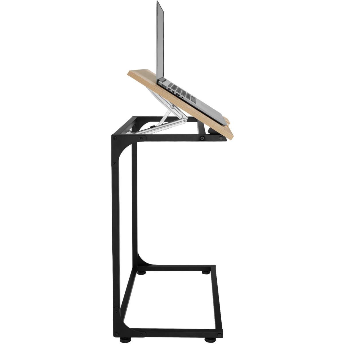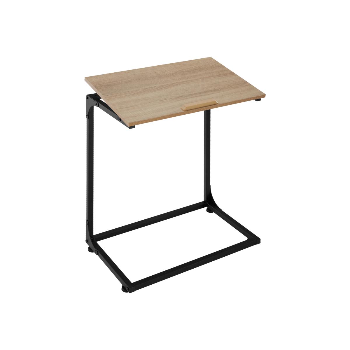 The side table Ruston from tectake combines visual appeal and with unique functionality for every home. The table top can be tilted at multiple angles, providing a convenient place to prop up a laptop, tablet or instruction book. The different angles, bottom ledge and four adjustable feet guarantee excellent stability for any purpose. Thanks to the new C-shape, the practical piece of furniture can be easily pulled up and used in the living room from the sofa, or as a bedside table. The industrial design and the contrast between the materials wood and metal give the linear piece of furniture calm and harmony - perfect conditions for working or relaxing in every home.