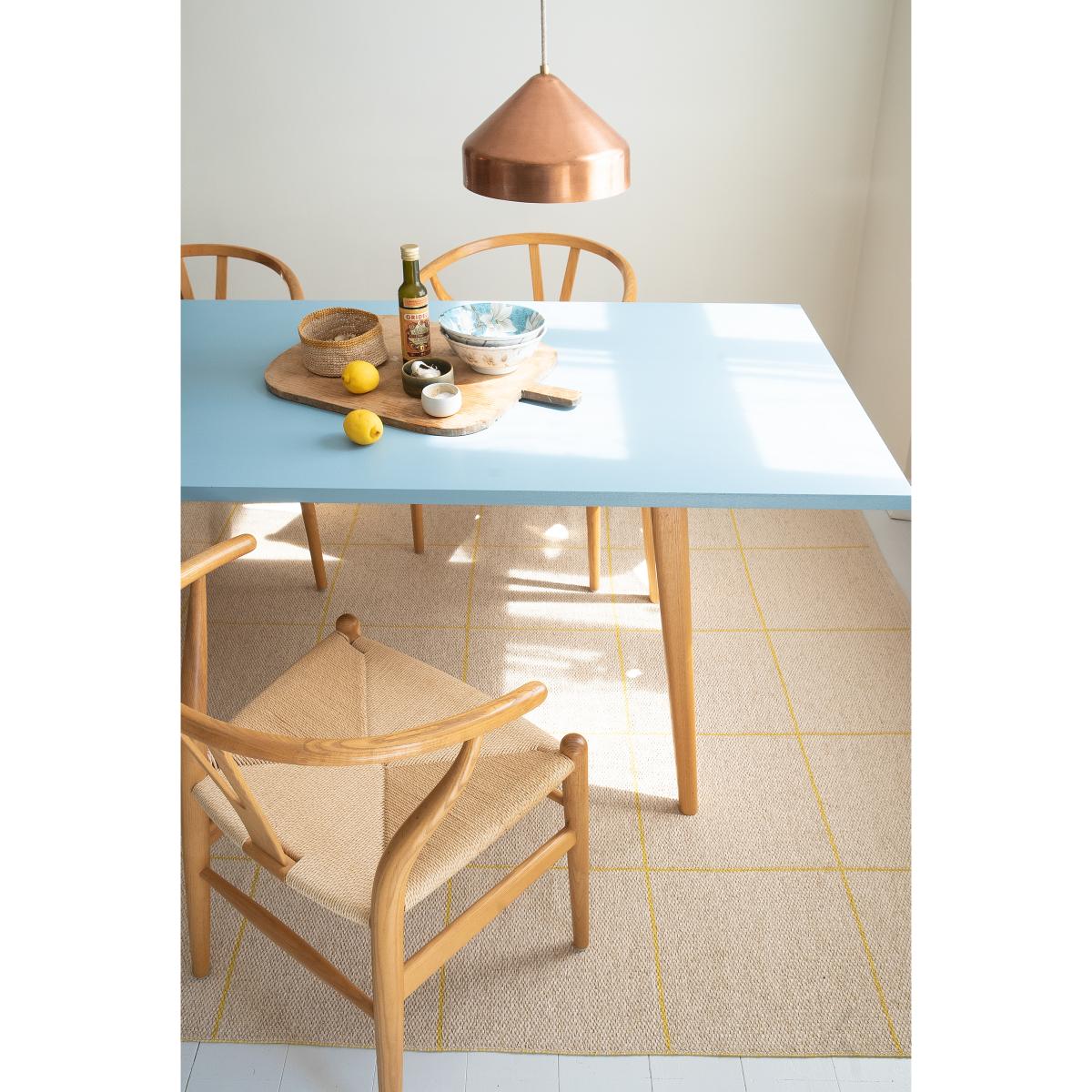 Ruth rug sulphur from Brita Sweden is a rug woven from soft vinyl with a reversible design that gives you two different patterns to choose from. The rug's durable material means that it is perfect under the dining table or in the living room or hall.
