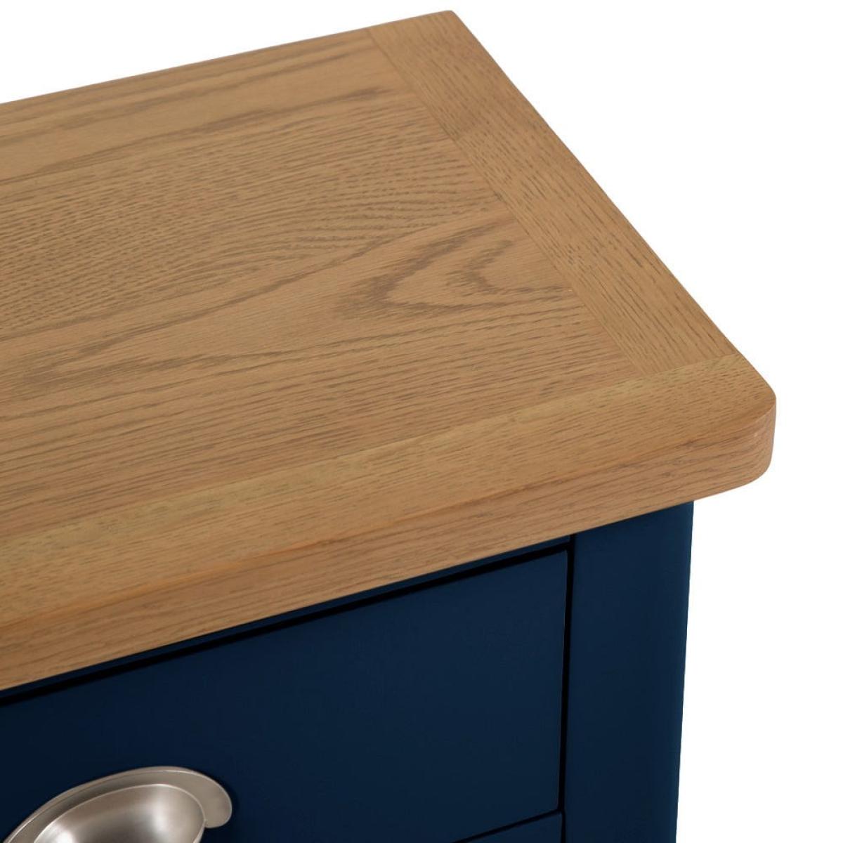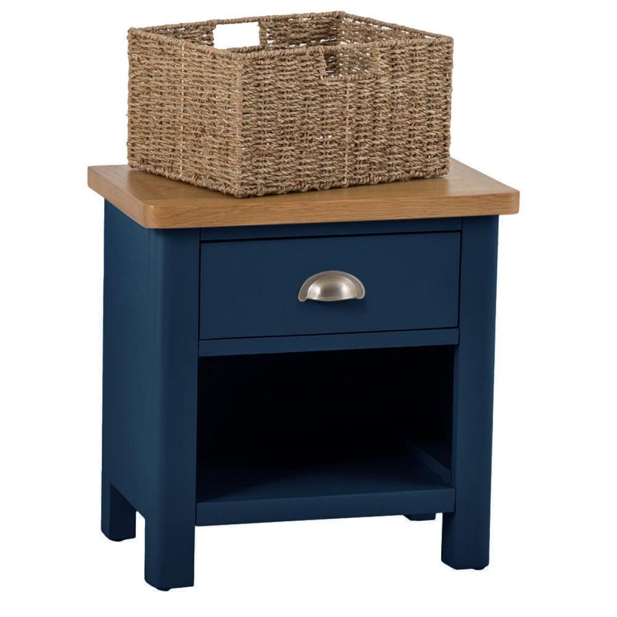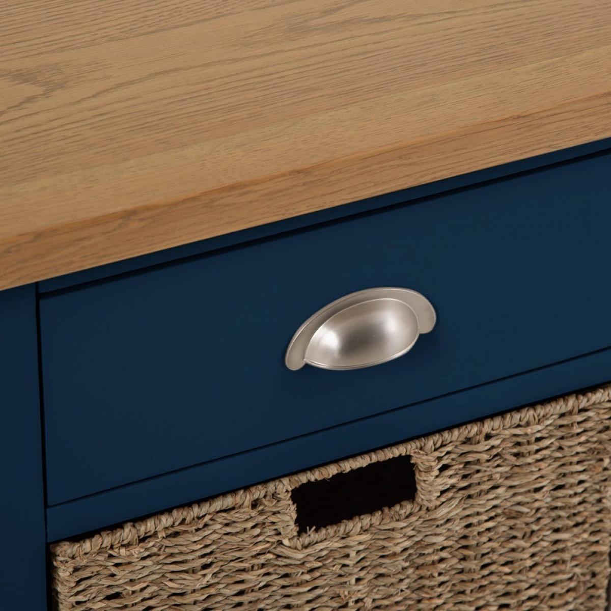 Our Rutland blue painted oak 1-drawer 1-wicker basket cabinet is a storage saviour with oodles of style. This petite piece has a spacious drawer for all your home essentials, and a removable basket for that quick tidy-up when you’re expecting guests. The dark blue paintwork introduces contemporary colour into any part of your home, and the pale wicker and solid oak top add contrasting splashes of light. You can keep this cabinet in your hallway to display a warm lamp or some framed photos, or use it as a side table to accommodate drinks and snacks in any living space.