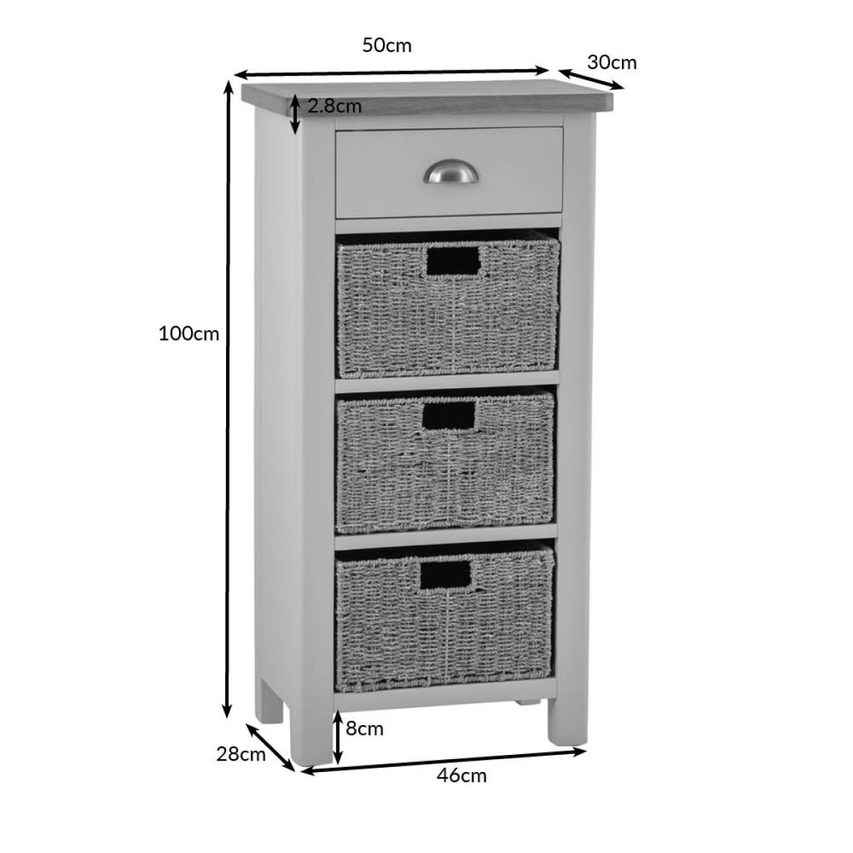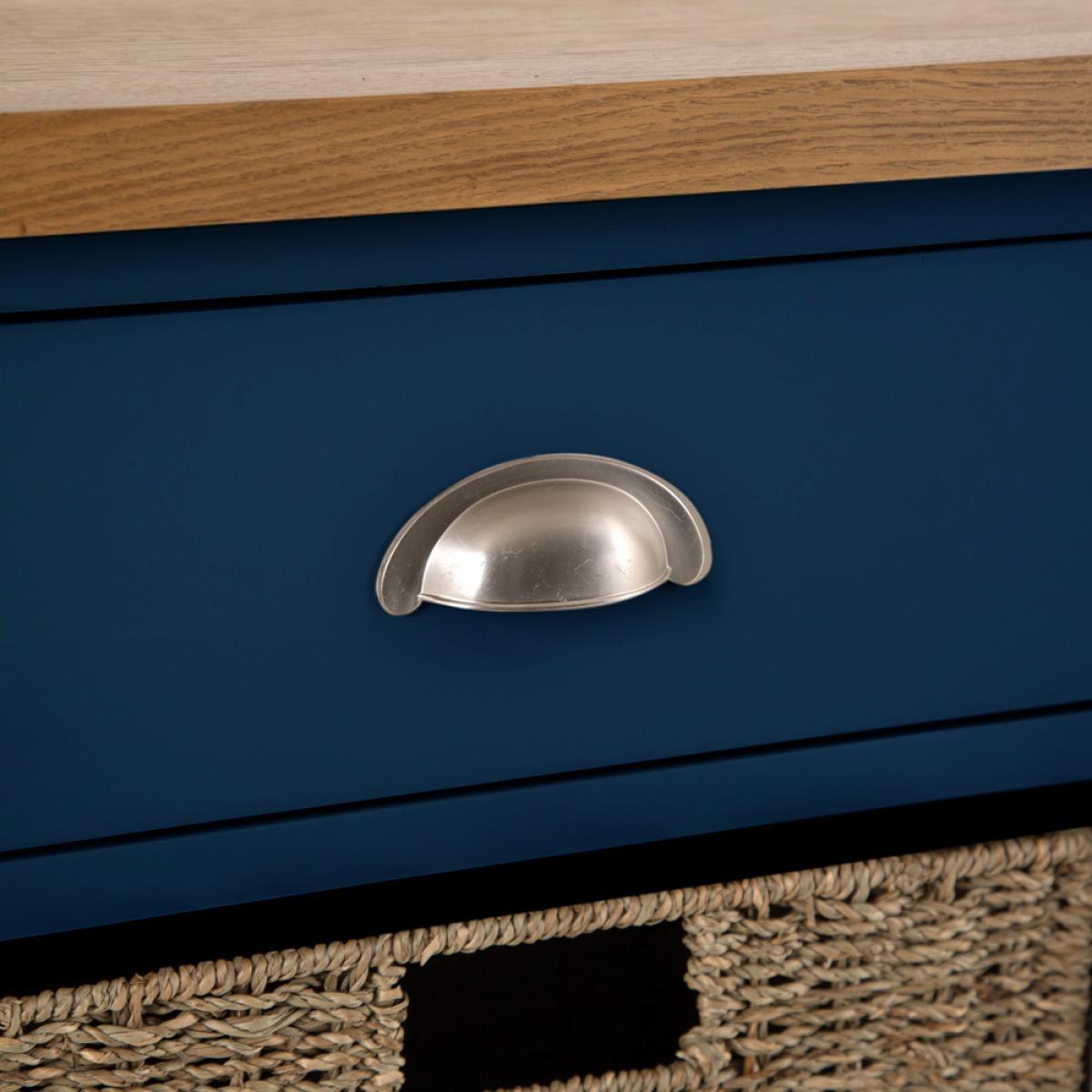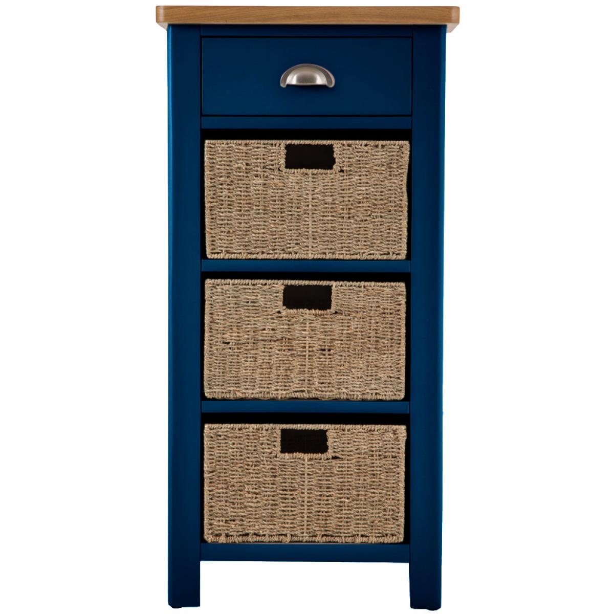 Rutland Blue Painted Oak 1 Drawer 3 Wicker Basket Cabinet