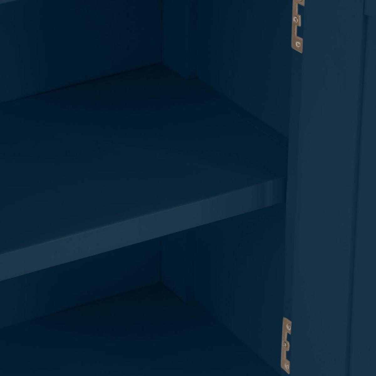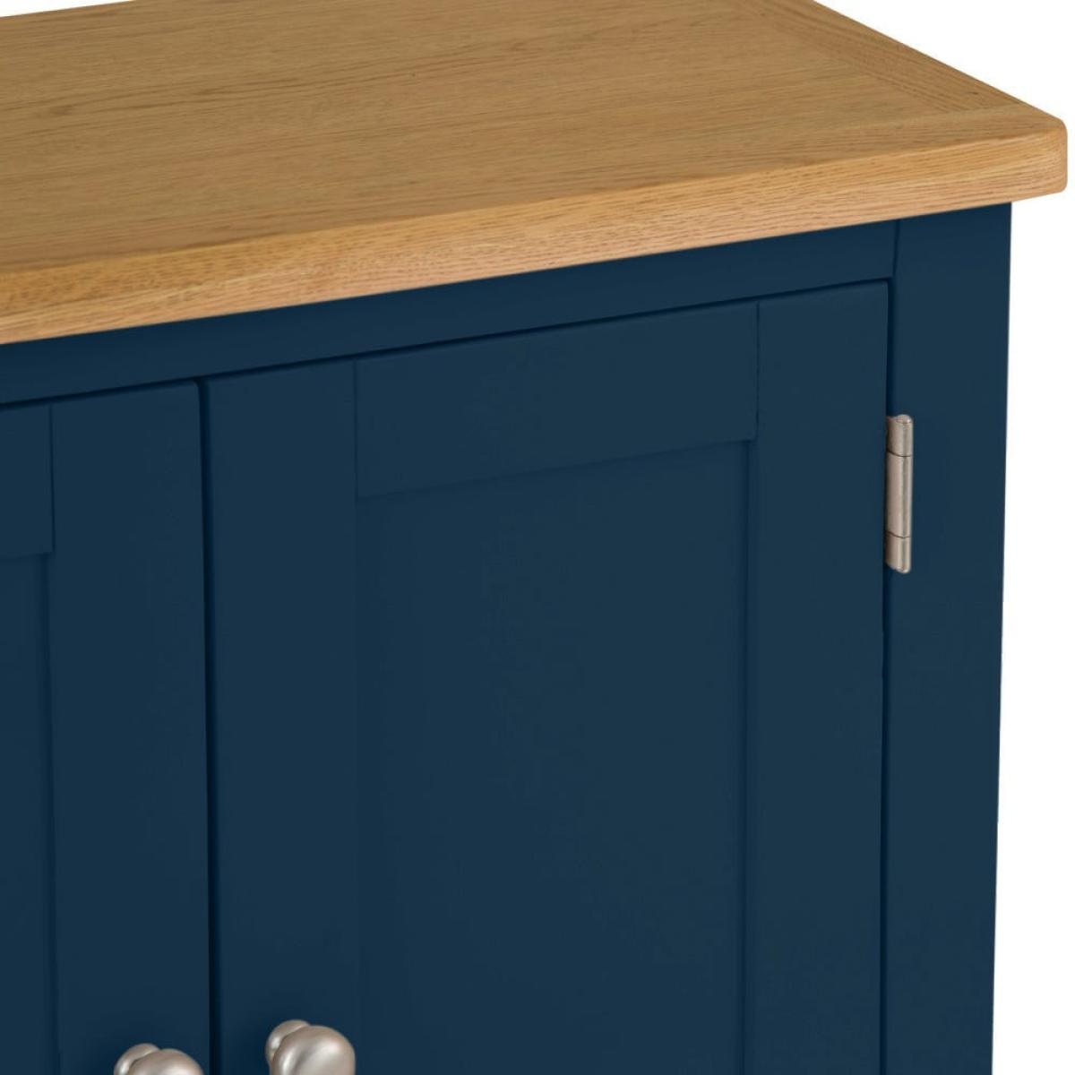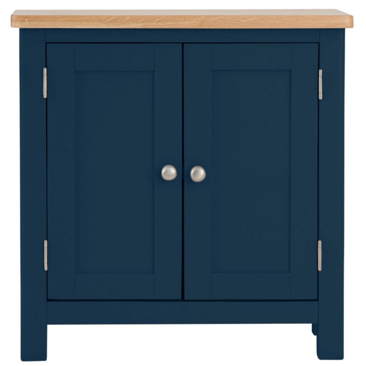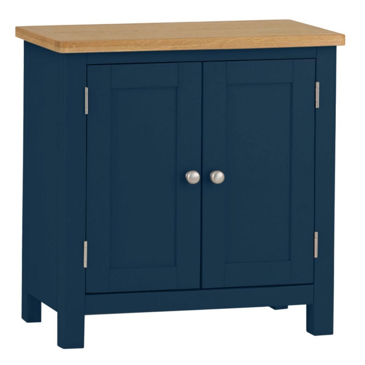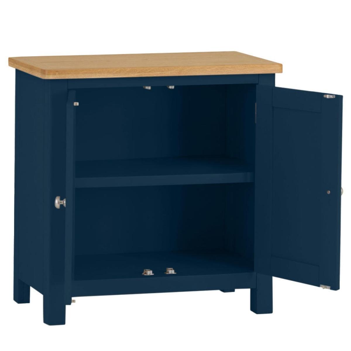 Our delightfully simple Rutland blue painted oak 2-door cupboard combines looks with storage space to make a winning addition to your home. The striking rich blue hue is offset by the brightness of our chrome doorknobs and hinges, and the oak top brings classic warmth to a piece that fits seamlessly into any space. This double cupboard has a pair of shelves to serve up plenty of space for your crockery and glasses or board games and toys. Place your favourite colourful print and a couple of scented candles on top to enhance the cool credentials of this super-smart piece.