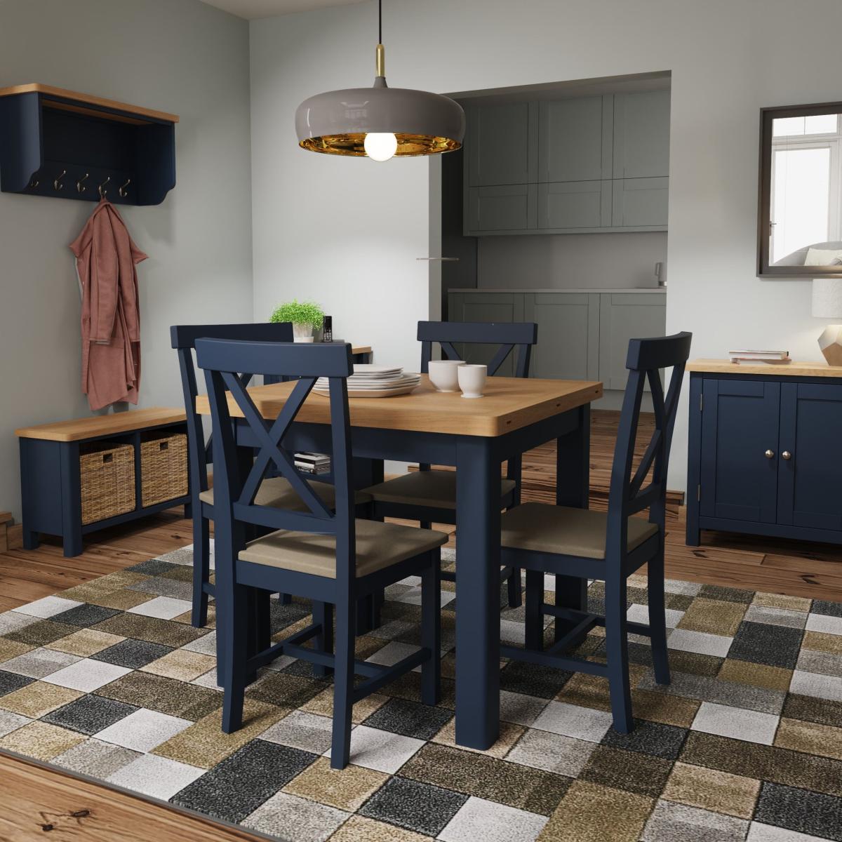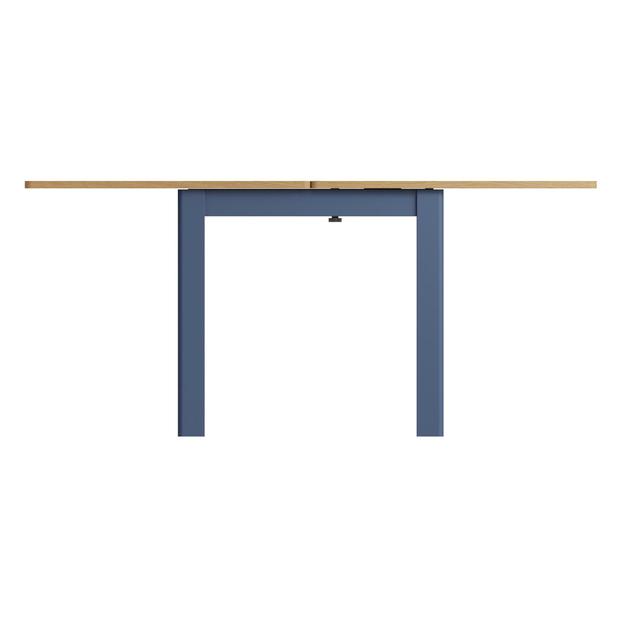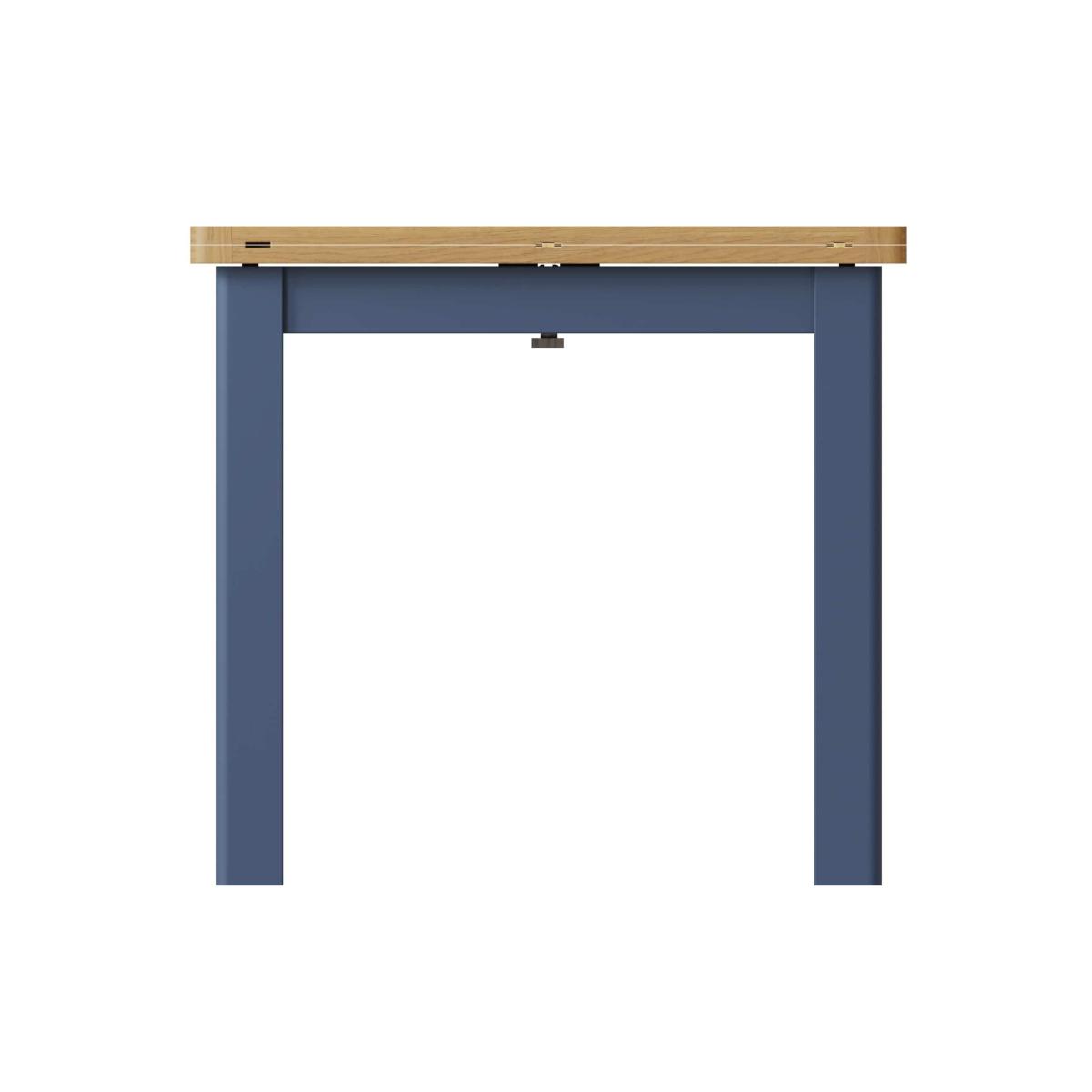 I love the blue painted oak table because it adds a classic yet contemporary touch to a dining space, making it versatile for both traditional and modern interiors. It works particularly well in kitchens or open-plan living areas that feature muted or earthy tones, as the blue brings a subtle pop of colour without overwhelming. Practical styling tips include pairing it with neutral or patterned upholstered chairs for contrast, and keeping accessories minimal to let the table stand out as a focal point. An extending flip top makes it ideal for both daily family meals and larger gatherings, enhancing its functionality without compromising style.