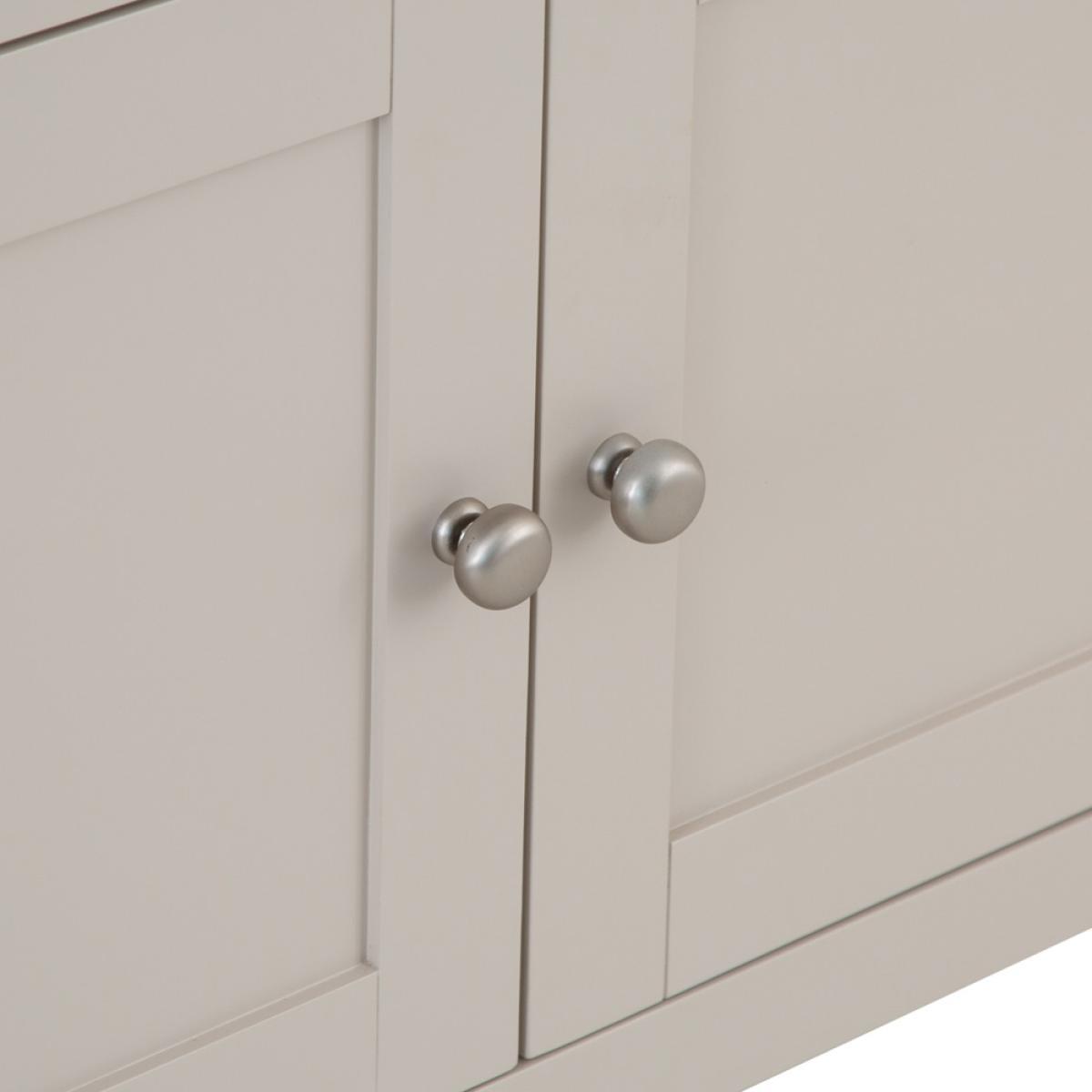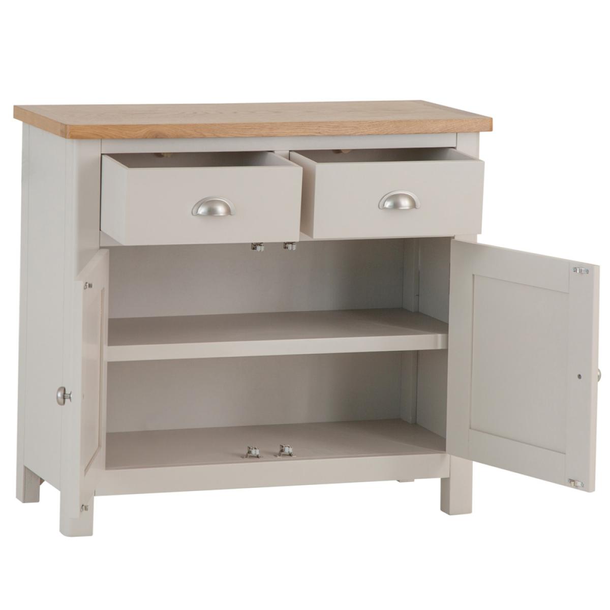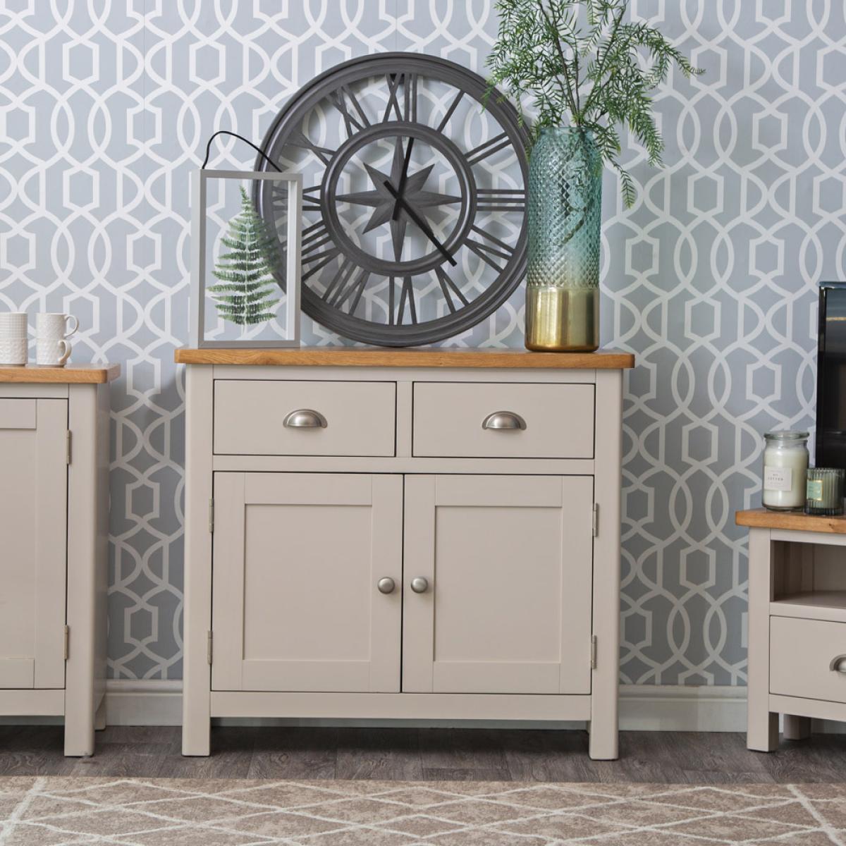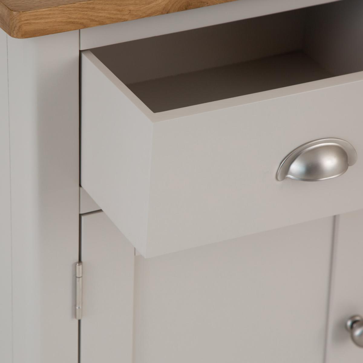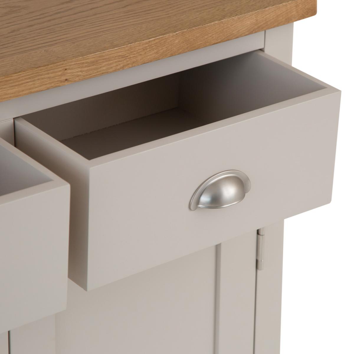 The Rutland Painted Oak Small Sideboard is the homely addition you’ve waited a lifetime for, and thanks to our 2-man delivery you can have it arrive with ease. By combining a stone grey painted finish with an attention to detail you thought was a thing of the past, we’ve created a Storage Unit that enhances every room in the house. The metal handles, the choice of colour, and the contrast with the light oak top all come together to create a piece you’ll be proud to call your own. All you need to do now is adorn it with a lamp and a couple of your favourite ornaments.