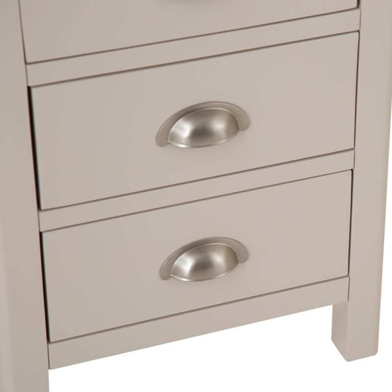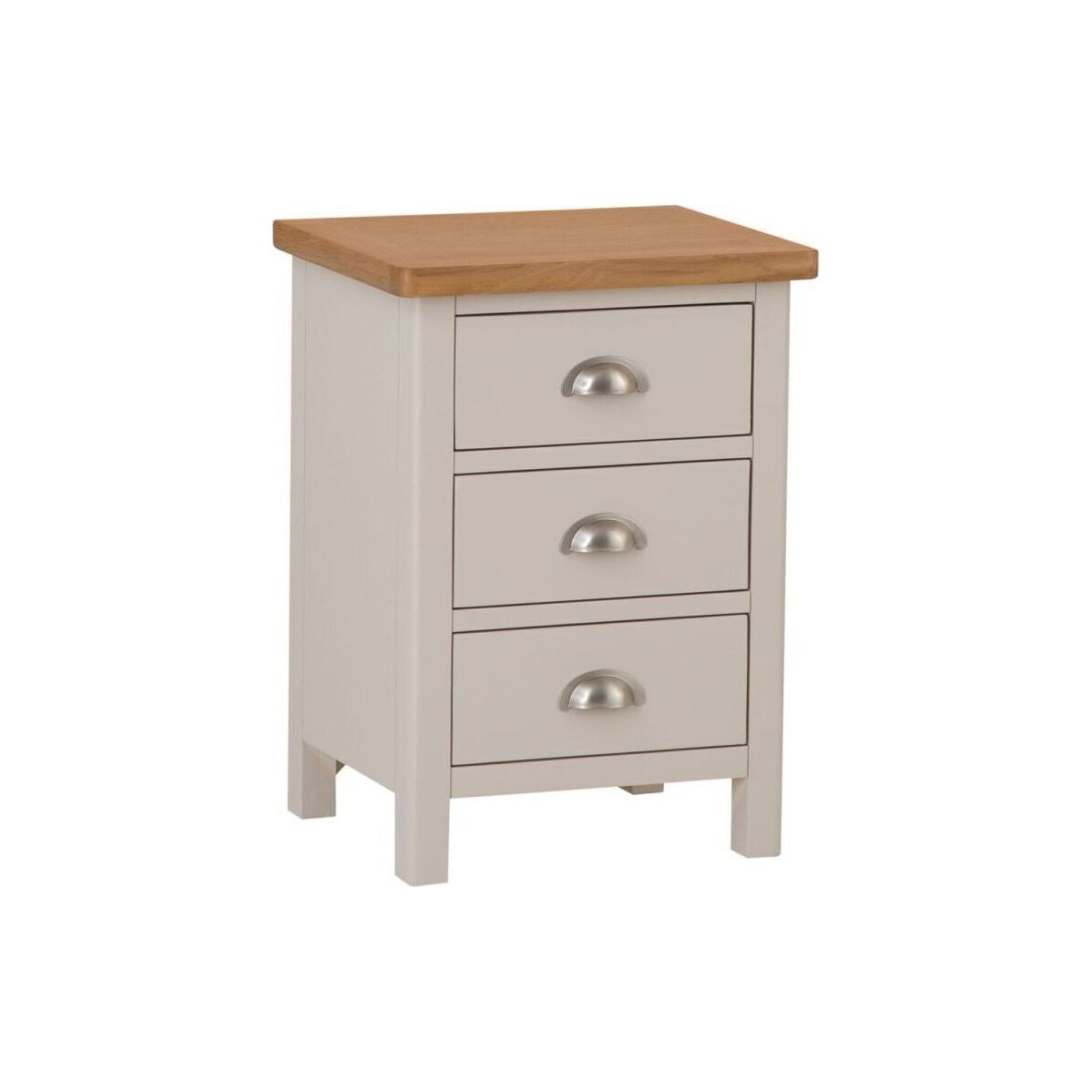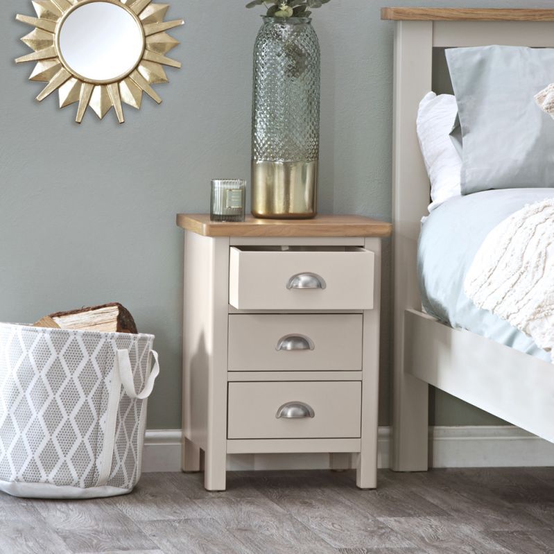 Settling down for the perfect night’s sleep is only possible when you know everything you’ll need in the night is within arm’s reach. The Rutland Painted Oak 3 Drawer Bedside is created for those who love the look and feel of high-end furniture, but don’t want to pay high-end prices. As you take a look at the contrast between the light and vibrant oak top and the expertly applied stone grey painted finish you’ll come to appreciate the work that goes into creating every Bedside Table in our range. The moment you take in the precision finished metal handles and dovetailed drawers you’ll know you’ve found a piece to enjoy for years to come.
