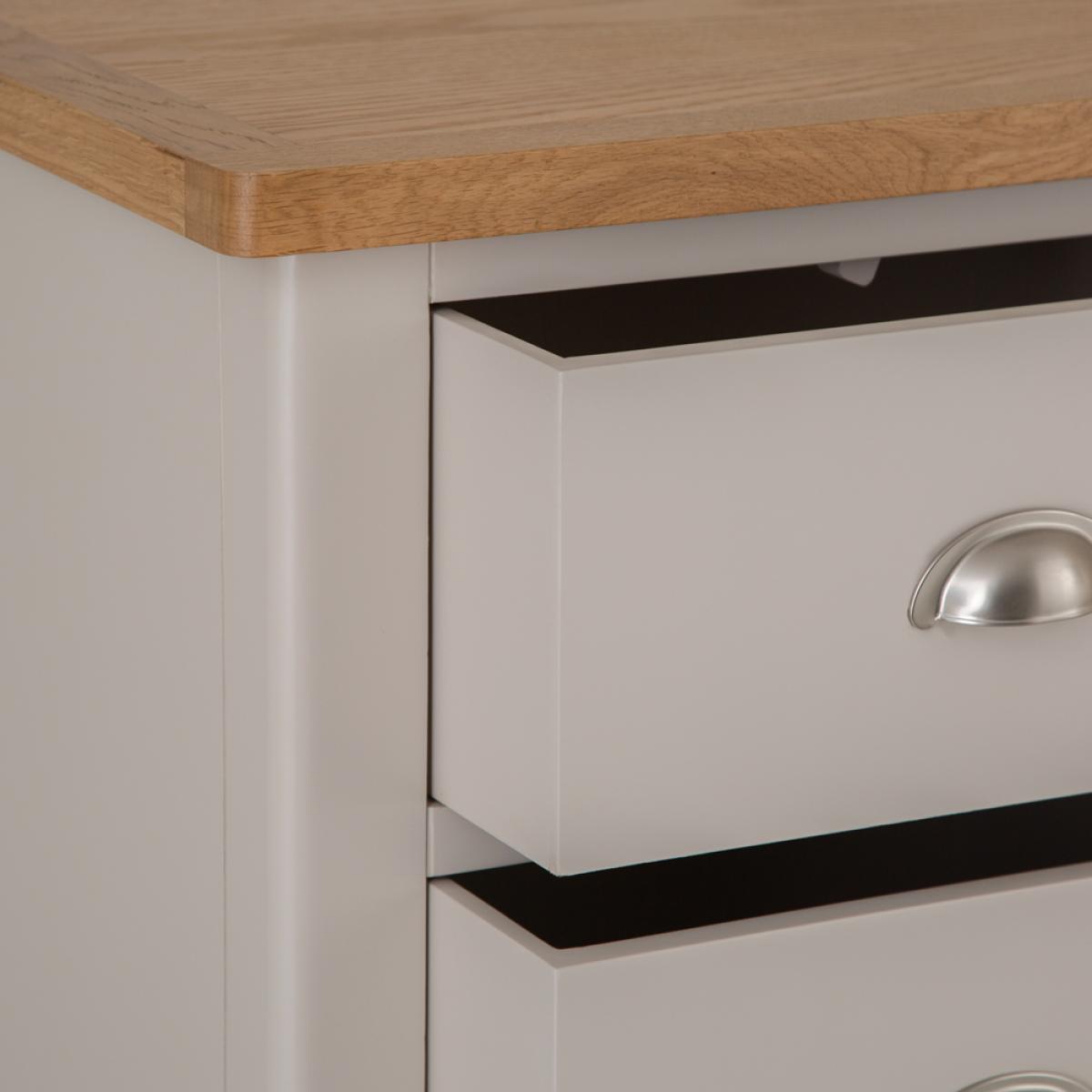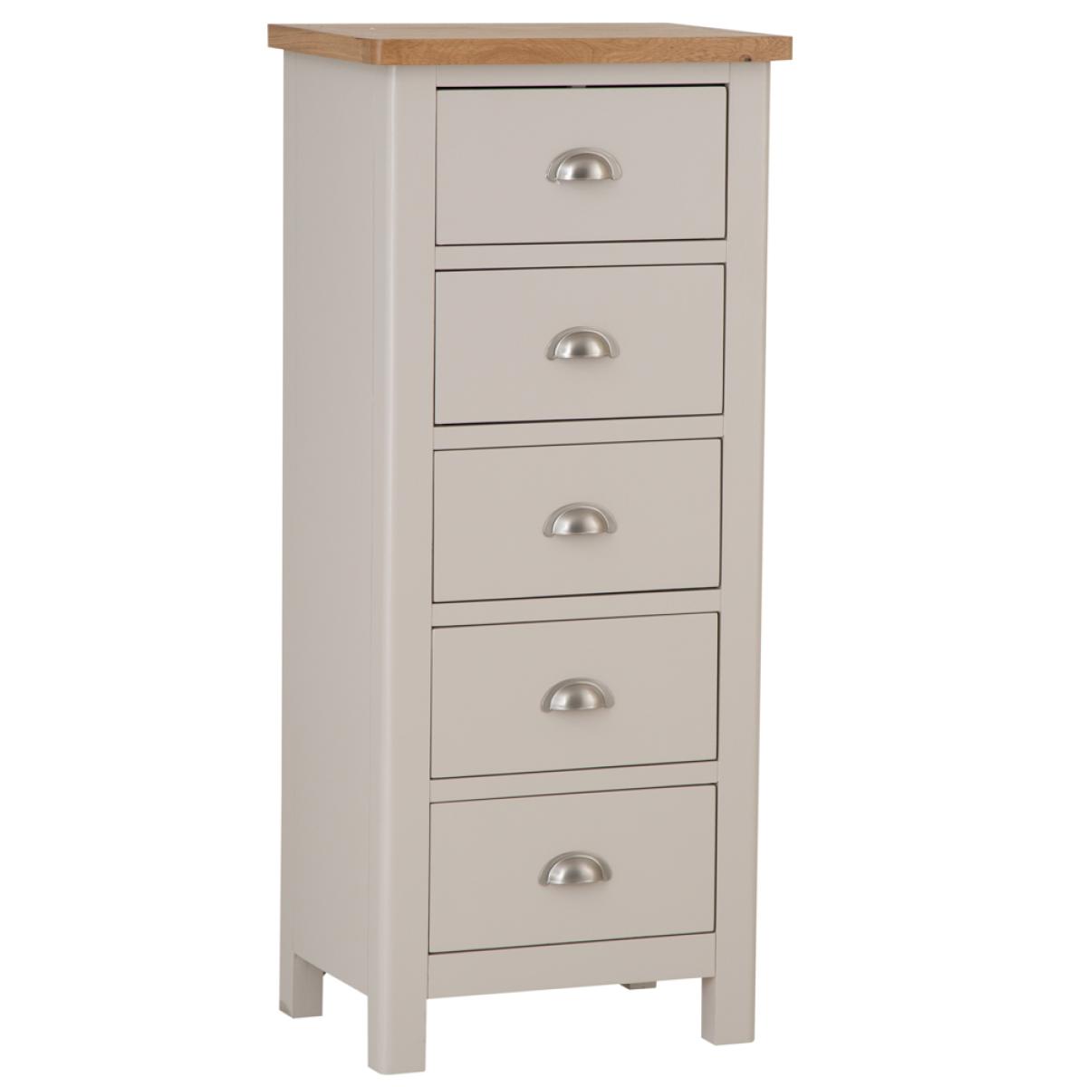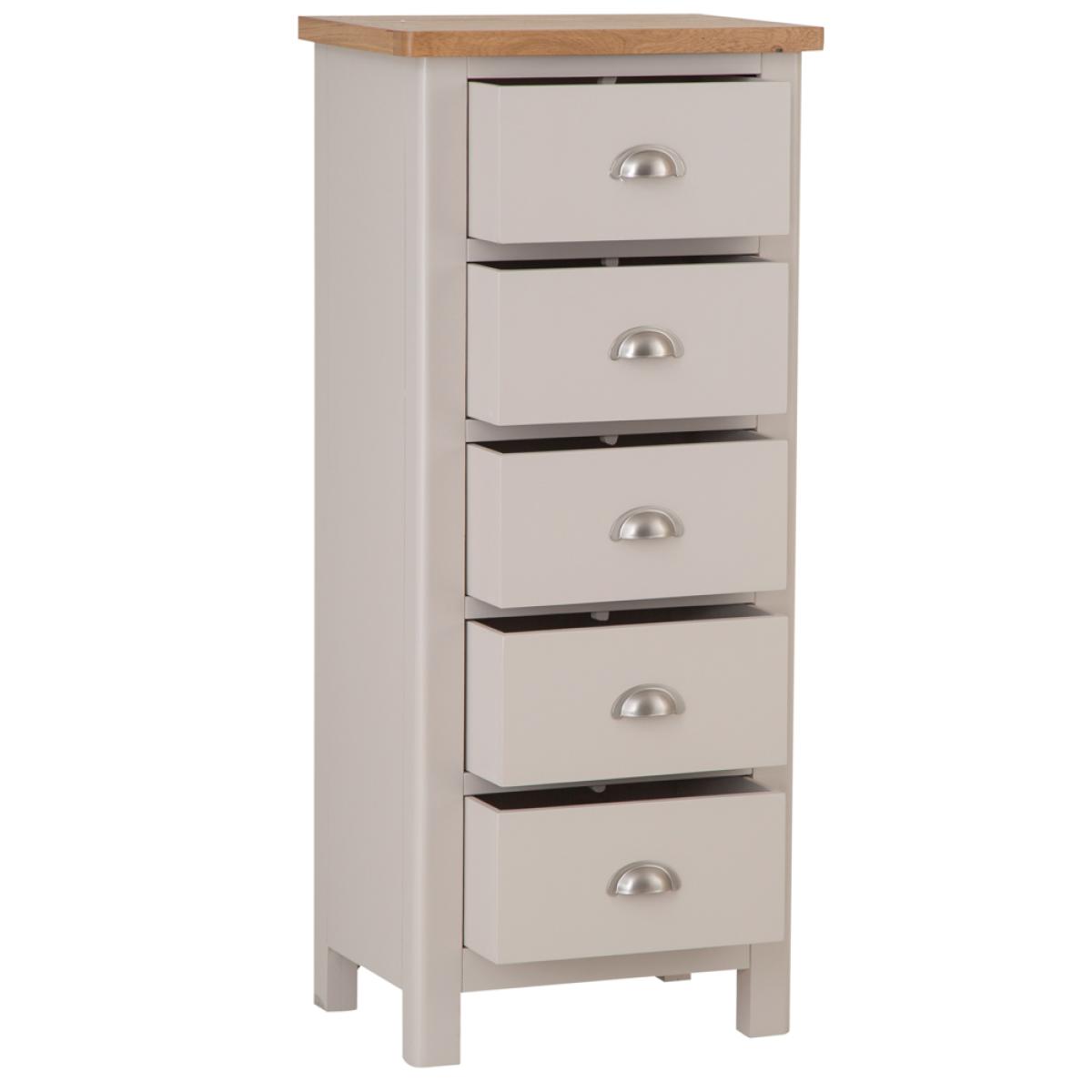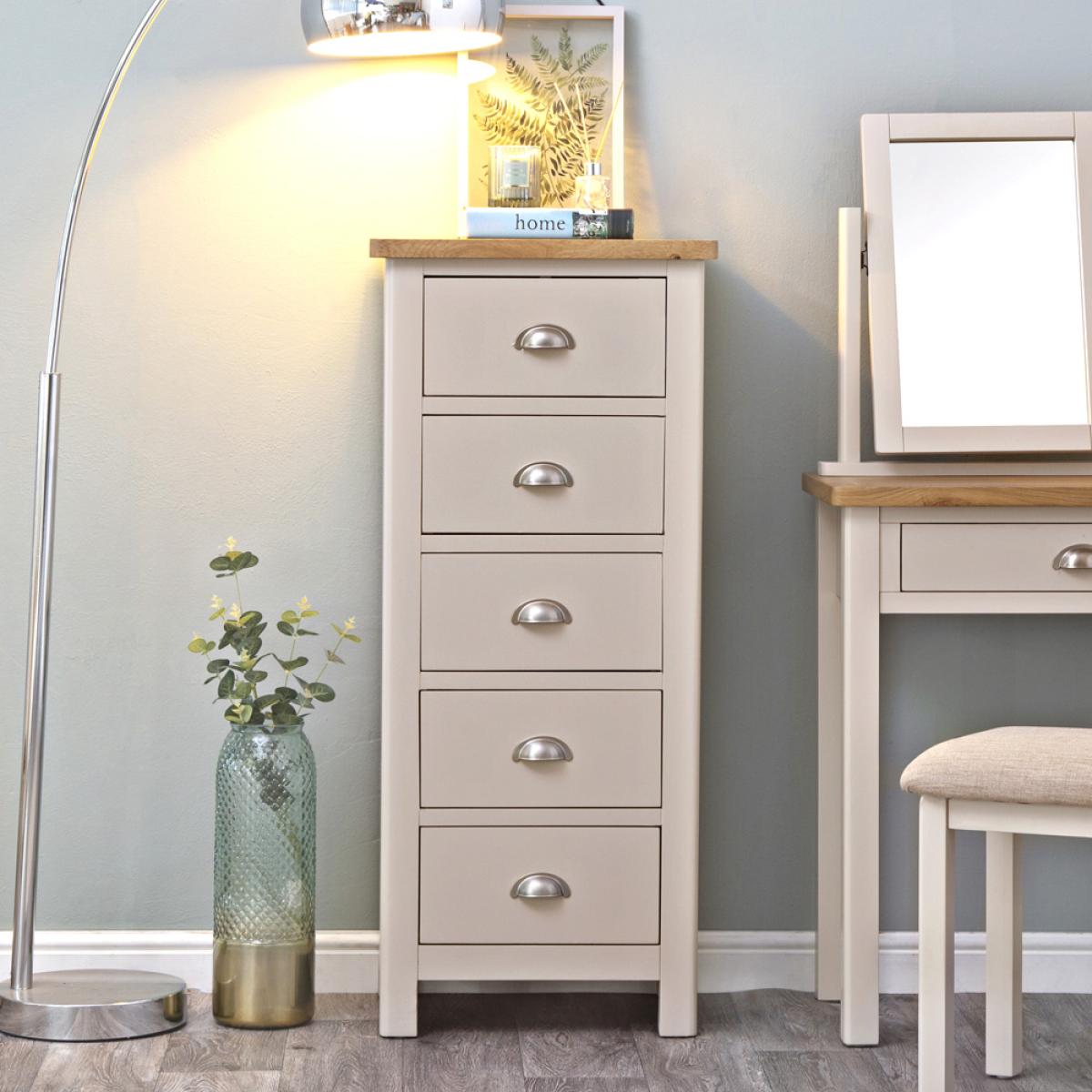 Making use of those narrow spaces can be a difficult balancing act. On the one hand you need a new Chest of Drawers to provide additional storage, but on the other you don’t want the bedroom to feel cramped and crowded. The Rutland Painted Oak 5 Drawer Narrow Chest is the answer to all your interior design problems, and it combines style and storage like never before. The elegant rounded corners combine with the brushed metal handles and stone grey painted finish to create a look that’ll live long in the memory. Just what you want when you’re looking for the finishing touches that make a house a home.