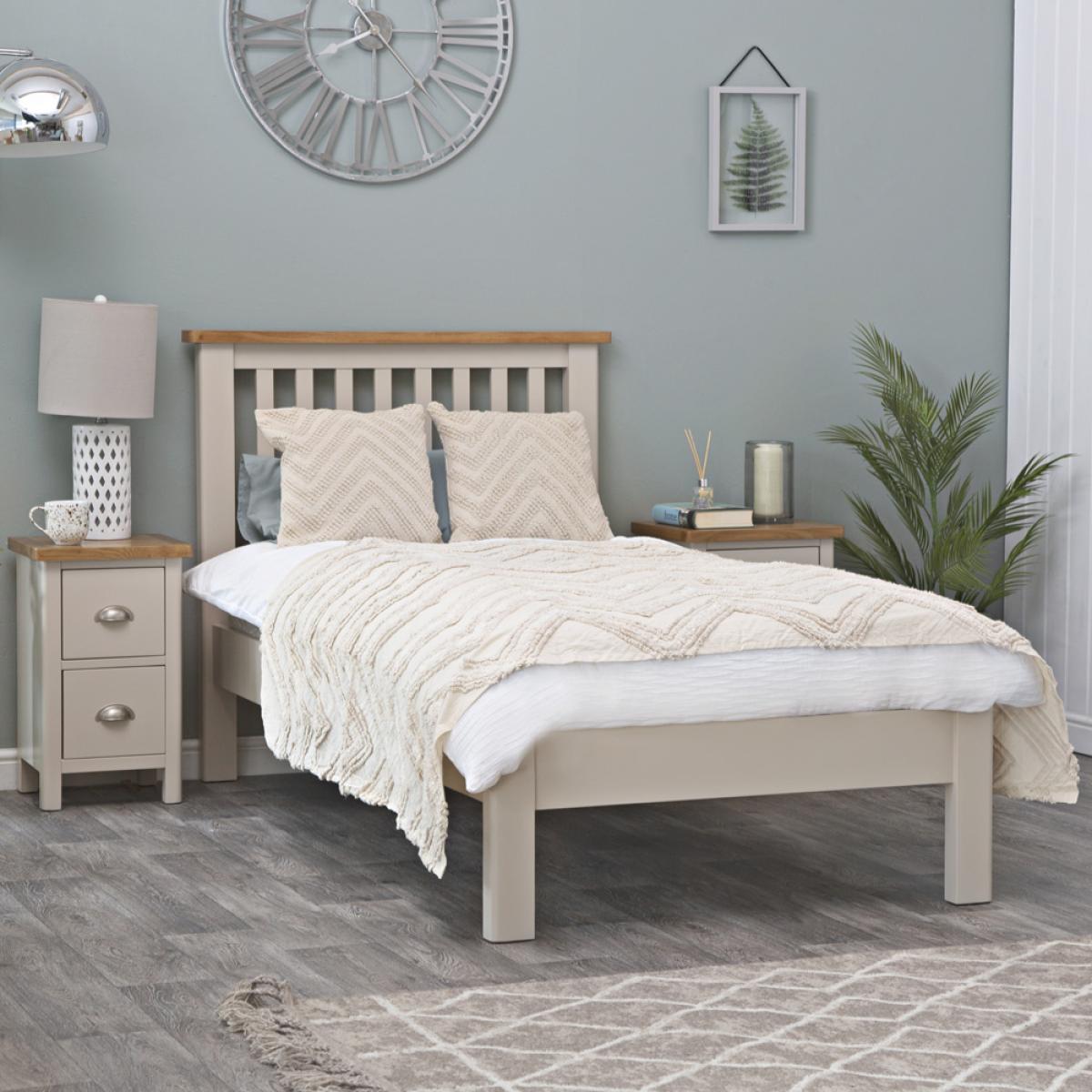 Treating yourself to the Rutland Painted Oak 3ft Single Bed Frame is a moment you’ll never forget. It used to be that single beds were something of an afterthought when it came to design, but those days are over. The thick Wooden Bed Frame assembles in minutes and is the perfect homage to the country stylings of days gone by. Look closer and you’ll appreciate every inch of the stone grey painted finish that so perfectly compliments the artisan craftsmanship. The ideal addition to a children’s bedroom, or if you feel like treating your guests to the perfect night’s sleep.