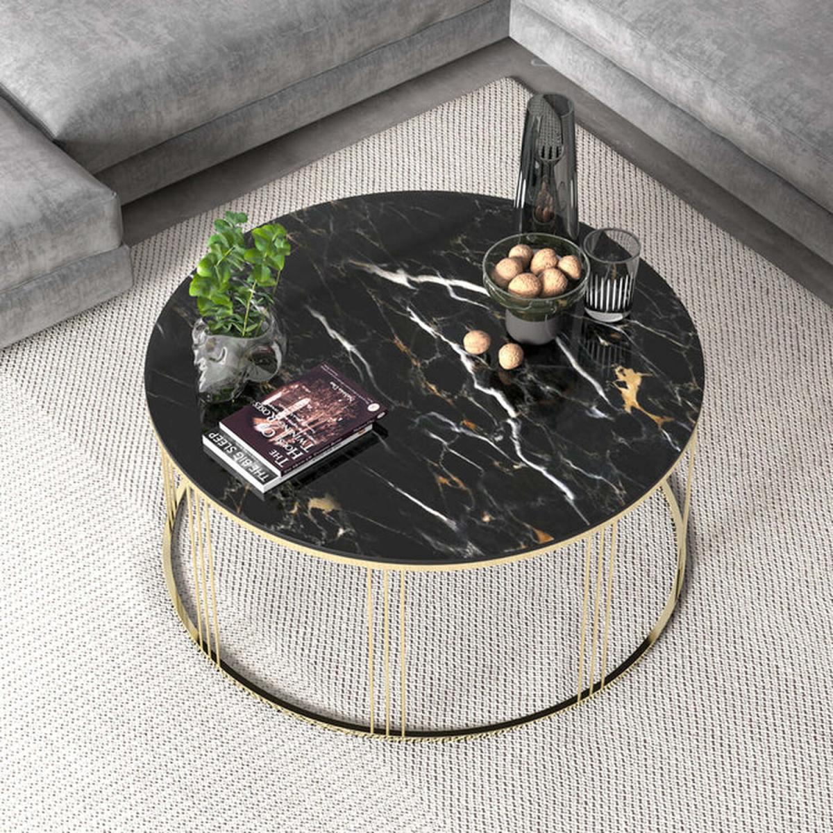 Ruum Notte Black Marble Top Round Coffee Table - Ruumstore - Black Marble