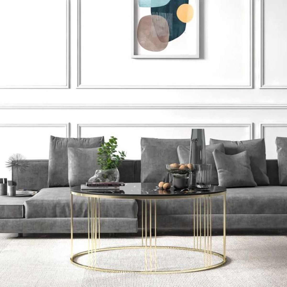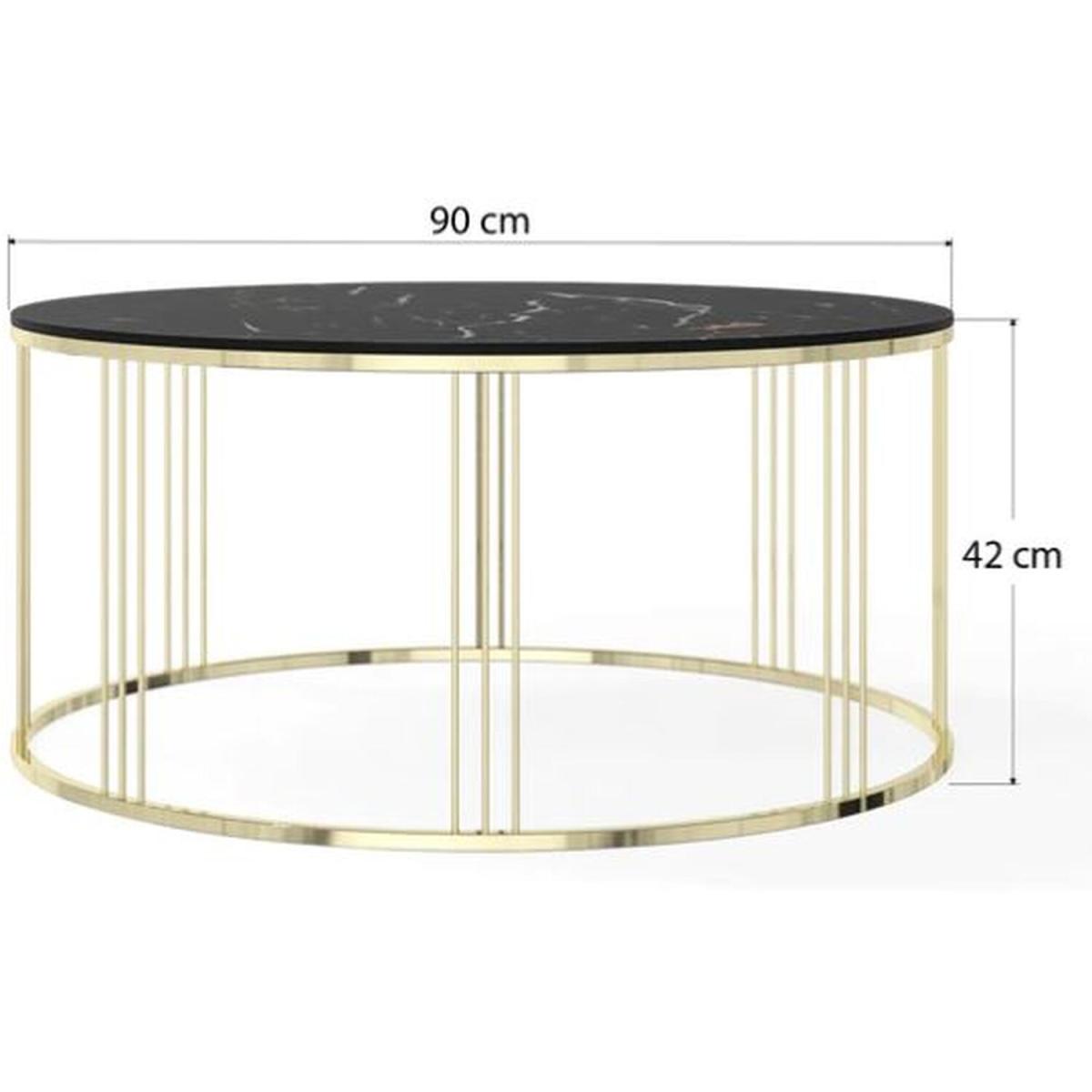 Ruumstore Notte coffee table, 42 cm, black marble top round coffee table with gold metal legs. It has a easy assemble with minimum tools required. How about making entrway for creative combinations in your home by using a modern style side table in any area of your home, whether as a coffee table or flower bed? With the Linera Console, Coffee Table, you can create functional options in narrow spaces and add elegance to your home's style with modern lines.