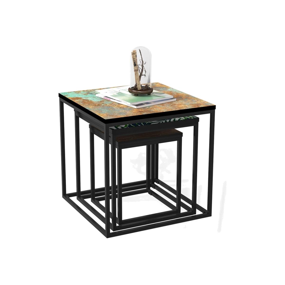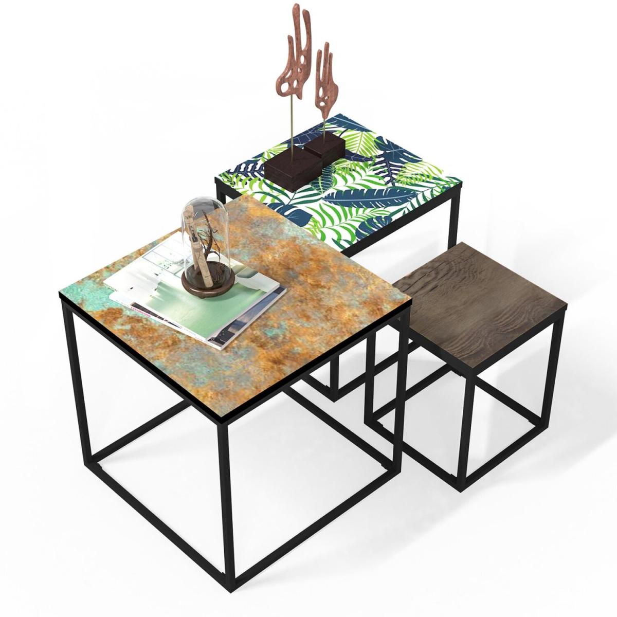 Ruumstore Penna Nesting Table , 50-50-48 cm, 3 Sets of Square Nesting Table, Wood Tops in Different Colours and Black Metal Legs. It has a easy assemble with minimum tools required How about making entrway for creative combinations in your home by using a modern style side table in any area of your home, whether as a coffee table or flower bed? With the Linera Console, Coffee Table, you can create functional options in narrow spaces and add elegance to your home's style with modern lines.