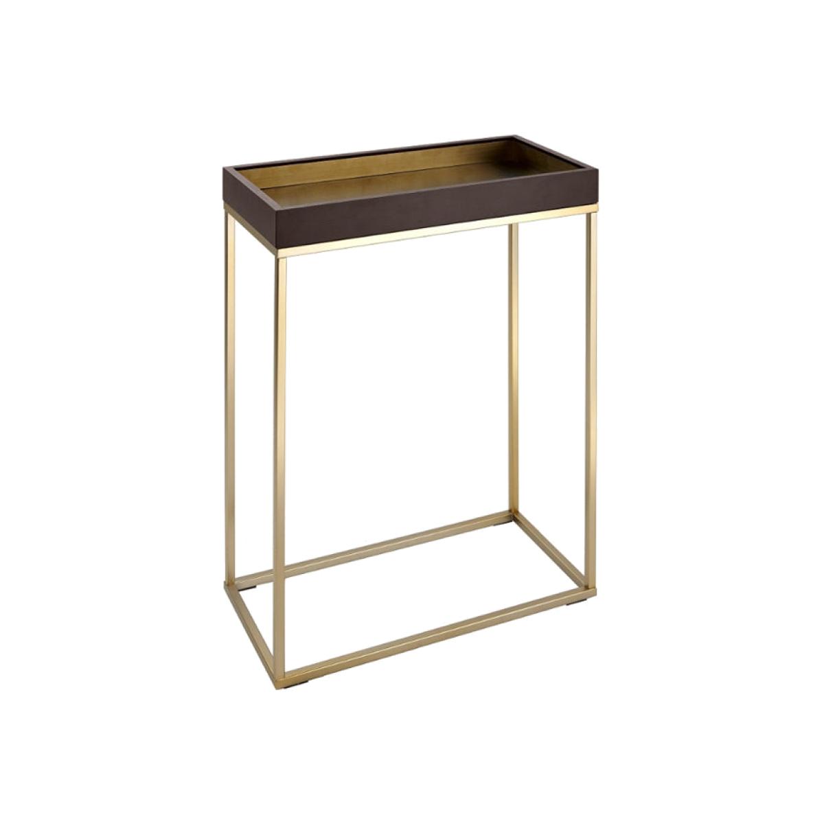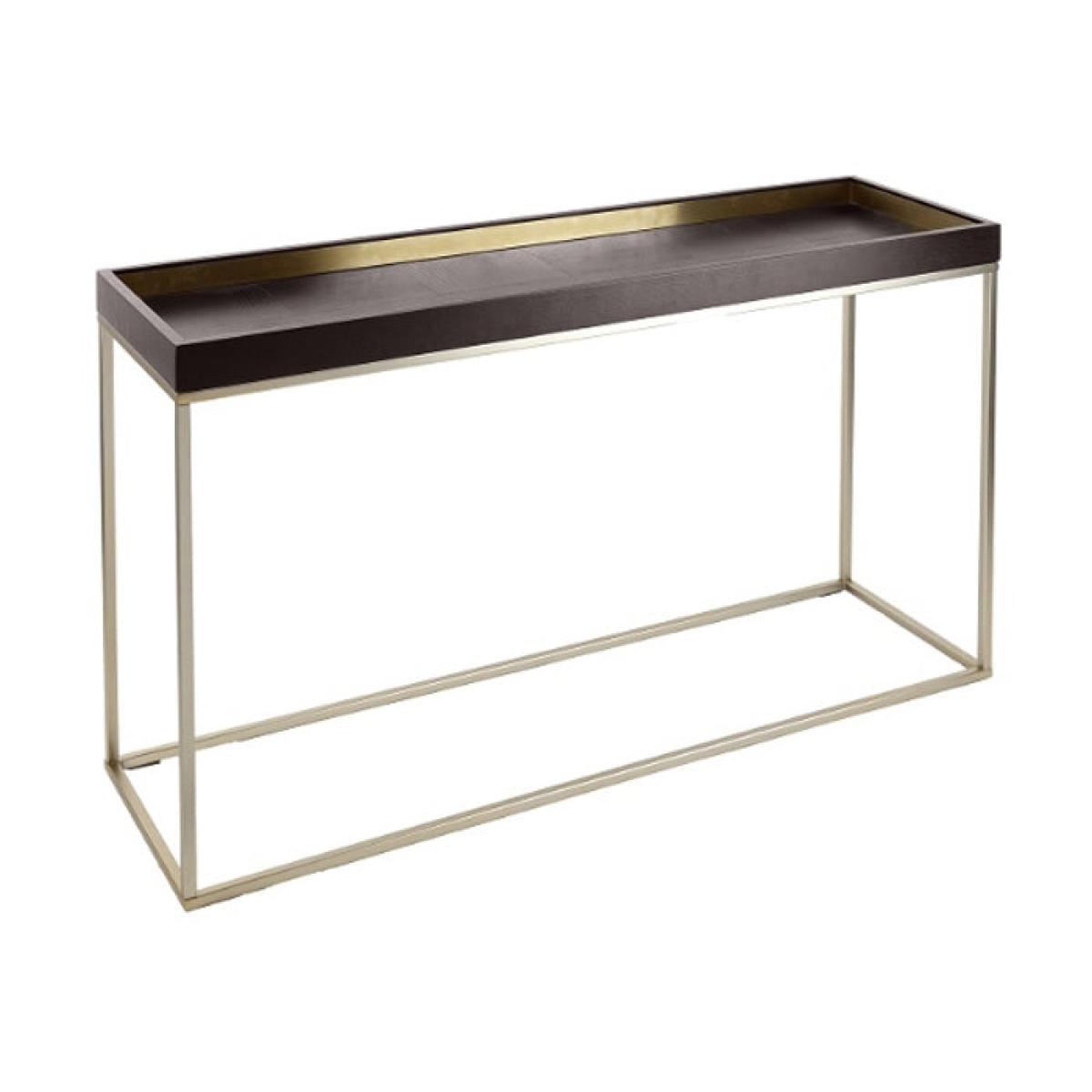 The Alyn console table from RV Astley has a stylish contemporary design that will look good anywhere in your home. The tray table top has a warm chocolate-coloured finish and is supported by an aluminium frame. This sophisticated design is perfect for home accessories such as lamps, vases and picture frames and comes in two sizes, making it the perfect table for hallways and small rooms in addition to larger lounges and living spaces. The larger table is 75cm high, 120cm wide and 35cm deep, while the smaller table is 76cm high, 60cm wide and 30cm deep. A lovely piece, this console table is very versatile. Dimensions: H: 76 x W: 60 x D: 30 cm H: 75 x W: 120 x D: 35 cm