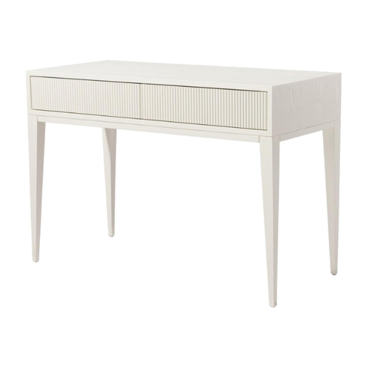 This beautiful Amur white dressing table will add a stylish feature for your bedroom with its timeless classic minimal design, with two slim drawers on white gently tapered legs. The drawers are finished with a rimmed pattern on the front, adding to the sophisticated design style of the dressing table. This piece will look perfect with a table top mirror and stool or table lamp to accessorise it and perhaps a vase or favourite photos, and it makes a practical storage solution for the bedroom, where you can keep important items close to hand but tidily stored away out of sight. Assembly. *Moot Trading Ltd is not a lender and acts only as an introducer. The credit product is provided by Klarna Bank AB (publ). Credit is only available to permanent UK residents aged 18 and over, subject to status. Terms and conditions apply. Please note that the following products are not regulated by the FCA: Pay in 30 days and Pay in 3 instalments. Read More.