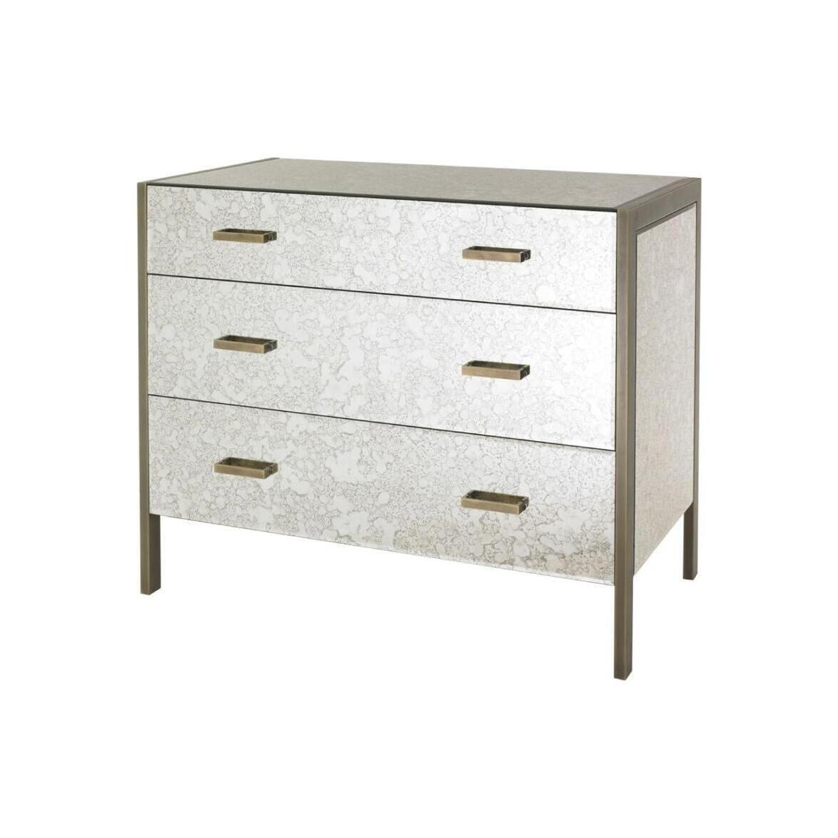 Antique Mirror And Ab Finish Legs 3 Drawer Chest From Olivia's. Material: Wood. All product dimensions and sizes available on site. Function and form meet style with Olivia's collection of chest of drawers, with so many styles and combinations we have the one to suit your needs. Each one is built with fine craftsmanship and is a great place to store anything from your socks to your linen.
