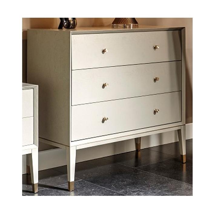 A timeless, elegant 3 drawer chest, finished in our ceramic grey with brass trim. Complete the range with the side and dressing table.