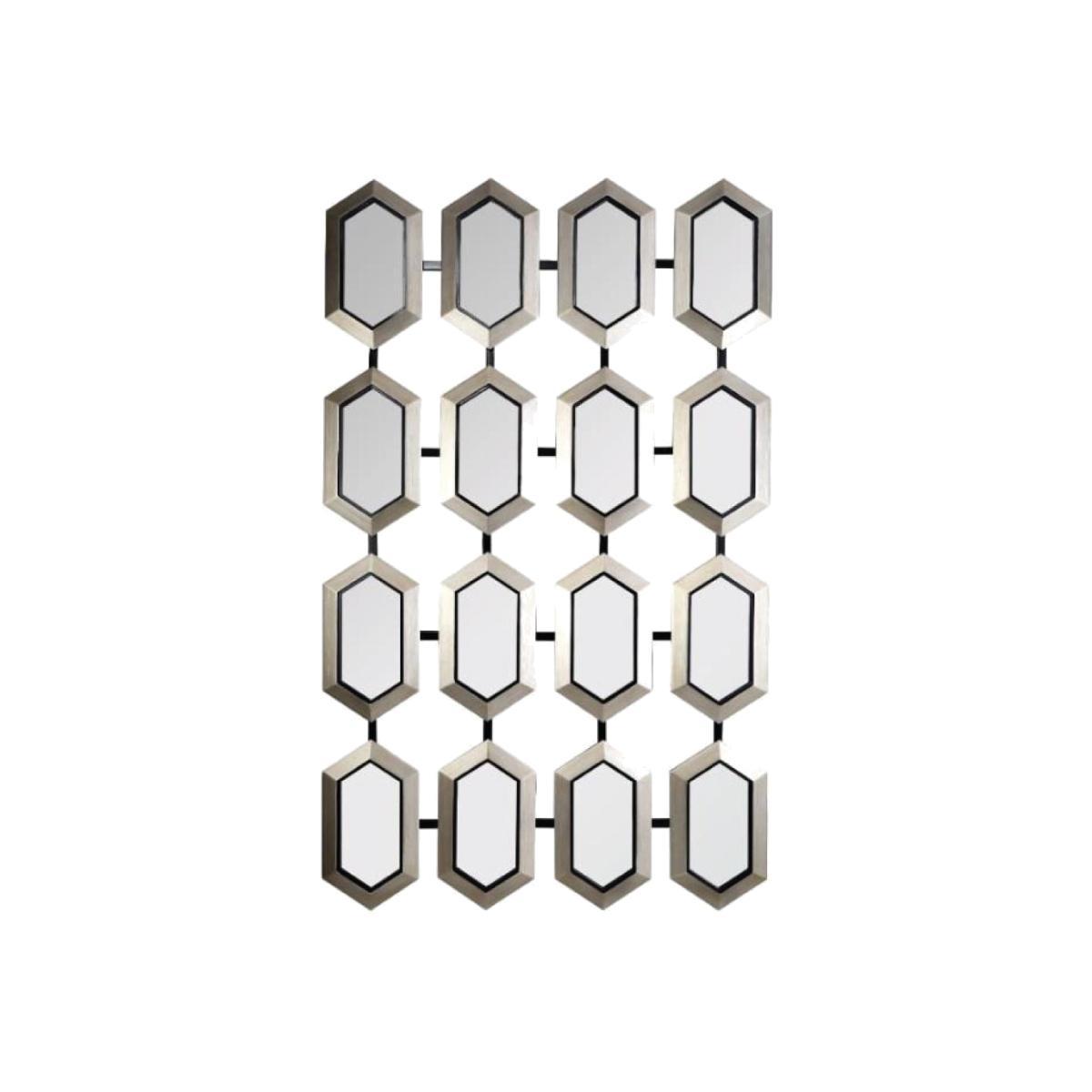 The Champagne Leaf Mirror is a versatile piece that adds a contemporary edge to various interiors. Its silver finish and geometric hexagon design make it an ideal statement in minimalist or modern spaces, while also complementing more eclectic styles when paired with metallic accents. I love using it as a feature above a console table or in a hallway to enhance light and create a sense of space. For practical styling tips, consider grouping it with other mirrors or artworks of similar tones to keep the aesthetic cohesive. It’s also great for smaller rooms, as it adds visual interest without overwhelming the space.