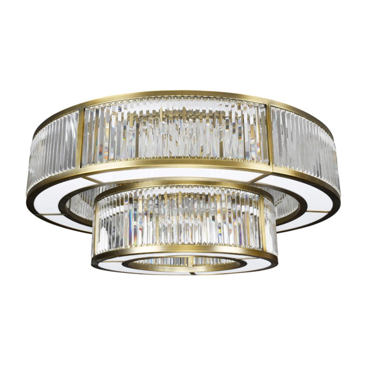 Channel your inner Great Gatsby with this truly magnificent art deco-inspired antique brass chandelier. The Garnet from RV Astley is a breath taking combination of fine cut glass crystal and polished chrome with an antique brass finish that is sure to steal the show wherever you place it. This piece is a showstopper - whether you place it in an entrance hall or entertaining space, it adds a touch of the theatrical to proceedings with two tiers of shimmering crystals; in fact, it wouldn’t look out of place on an ocean liner or in a glamourous hotel! The Garnet is 150cm in diameter and 82.5cm high. Dimensions:Fitting H: 82. 5 x W: 150 cm Ceiling Rose H: 30 x W: 2. 5cm Total Drop: 82.5cm Bulb: E14
