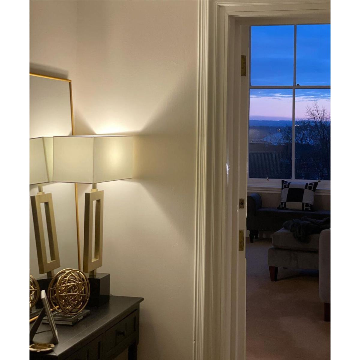 This lamp is a stylish addition that works well in contemporary and minimal interiors, thanks to its clean lines and geometric shape. I love its versatile colour palette, making it suitable for both neutral and coloured schemes, and its sculptural base adds an element of visual interest without overpowering a space. Practical styling tips include positioning it on side tables or console desks to create ambient lighting, or pairing it with modern accessories for a cohesive look. Its understated elegance means it can seamlessly blend into living rooms, bedrooms, or home offices, providing both function and design appeal.