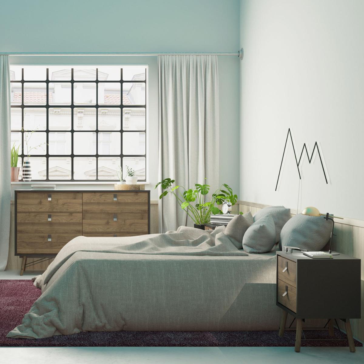 I’m a fan of this Ry bedside unit for its clean lines and warm oak drawers against the matt-black frame - it suits Scandi, mid-century and industrial-inspired bedrooms alike. The raised legs give it a light, airy feel, while two drawers hide everyday clutter. For styling, top it with a small ceramic lamp, a couple of design books and a little plant to add texture and colour, then slip in a woven basket underneath for extra storage.