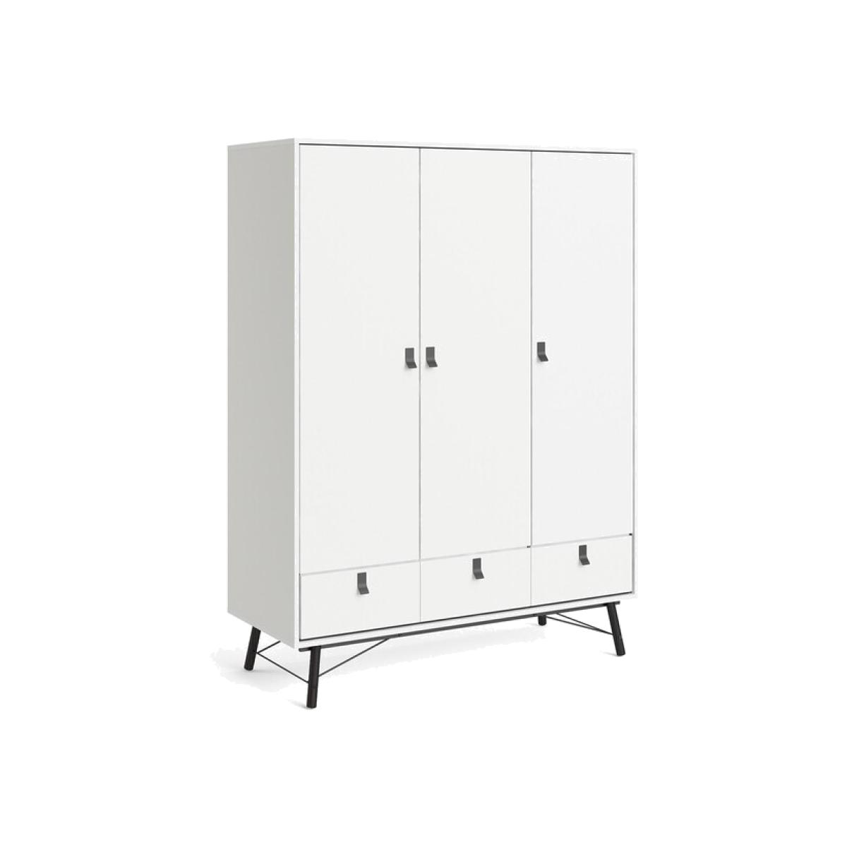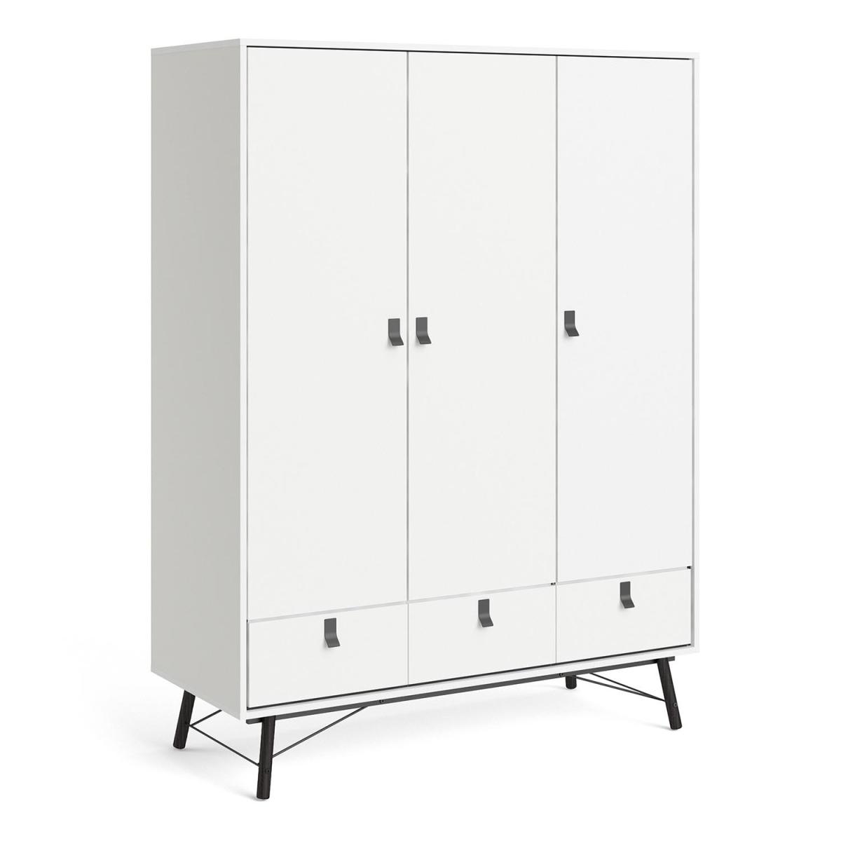 I love the clean, unfussy look of this three-door Ry wardrobe - its slim metal legs lift the bulk off the floor, keeping the room feeling light and airy. The crisp white finish and simple handles work equally well in Scandinavian, contemporary or minimalist schemes, and the three under-drawers give you a neat solution for folded items or seasonal accessories. For styling, group a couple of woven baskets or ceramic pots on top to add texture, and keep interior tidiness with modular organisers or matching hangers. Positioning it against a pale or muted wall lets artwork or a statement rug stand out without competing for attention.