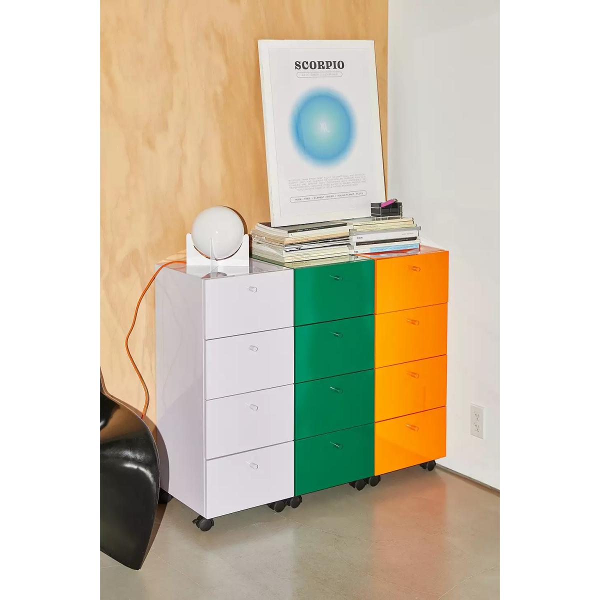 Add a kitsch storage solution to your space with the rolling Ryan cabinet. Features a four-drawer design with easy handles and a cord cut-out at the back panel. Brightly coloured cabinet in powder-coated metal, complete with a wheeled base, perfect for your office, bedroom or your getting-ready space. *Online return only. This item cannot be returned instore. Please note furniture items currently cannot be shipped to Northern Ireland or The Republic of Ireland. Delivery of large furniture items may take 1-2 weeks and are therefore not eligible for Next Day Delivery.* **Content + Care** \- Assembly required - instructions and hardware included \- Metal \- Wipe clean **Size** \- Dimensions: L: 34.9cm x W: 33cm x H: 81.2cm \- Drawer dimensions: L: 27.5cm x W: 30cm x H: 8.9cm \- Weight limit: 20 lbs per drawer \- Weight: 30.8 lbs \- Shipping package dimensions: L: 44.5cm x W: 42.5cm x H: 83.8cm \- Shipping package weight: 38 lbs