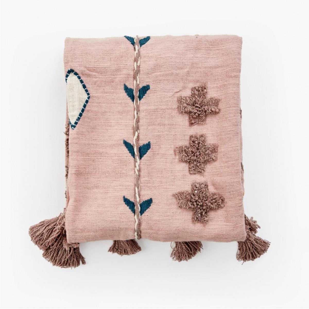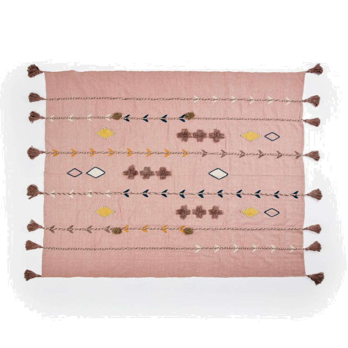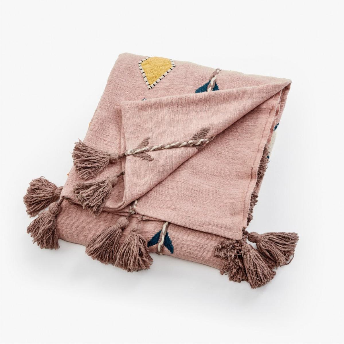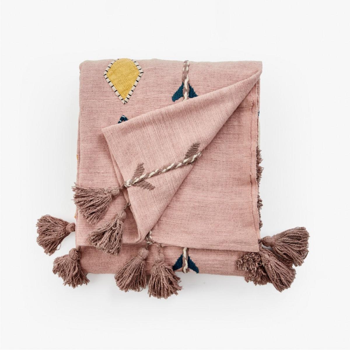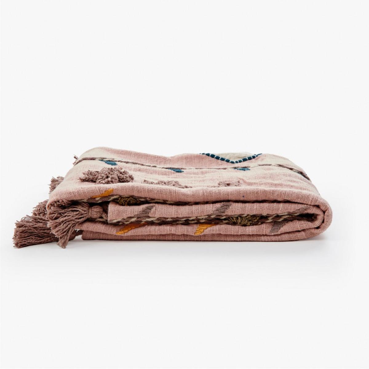 Ryker Cotton Embroidered Throw, Pink, 130x160 cm