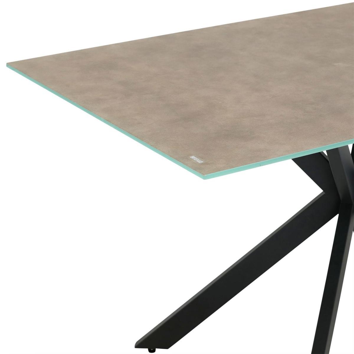 Design. With its striking metal base and cool grey top, the Ryker ceramic dining table will bring a contemporary update to any interior. Its angular pedestal legs offer plenty of space to gather around, while a highly durable surface comes courtesy of hardwearing ceramic. This stylish grey dining table is also available as part of a corner dining set.