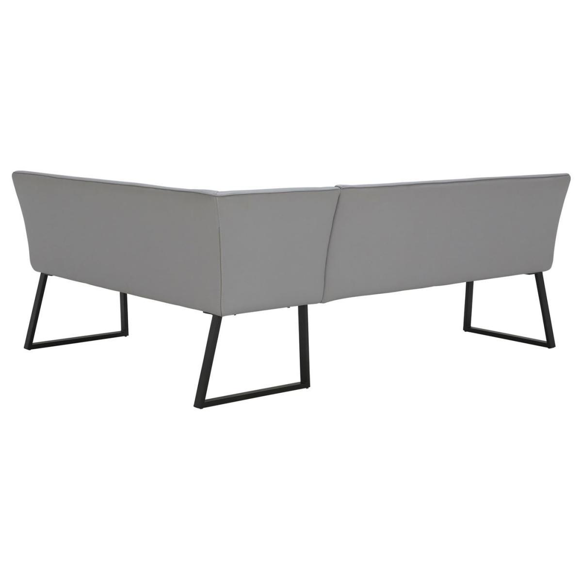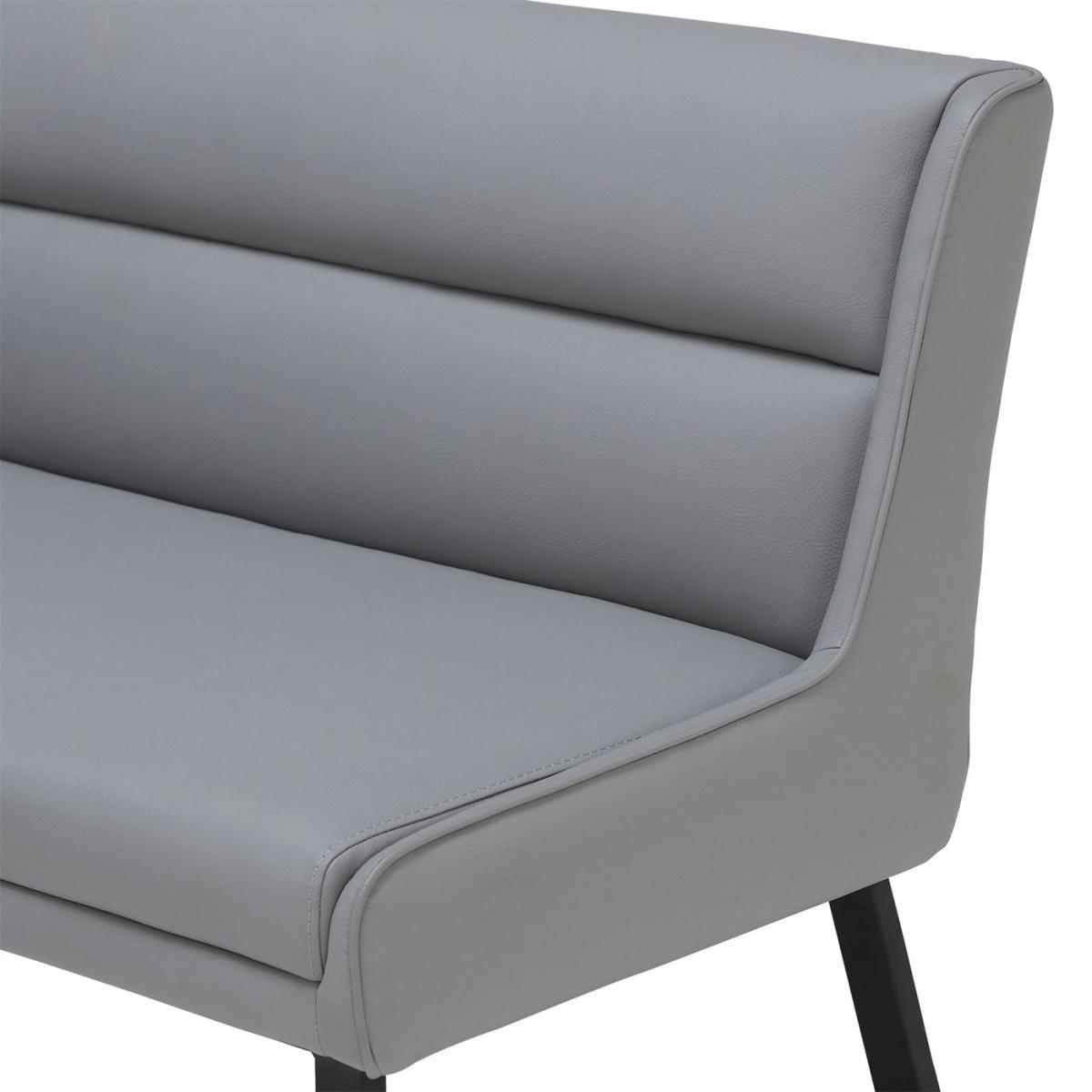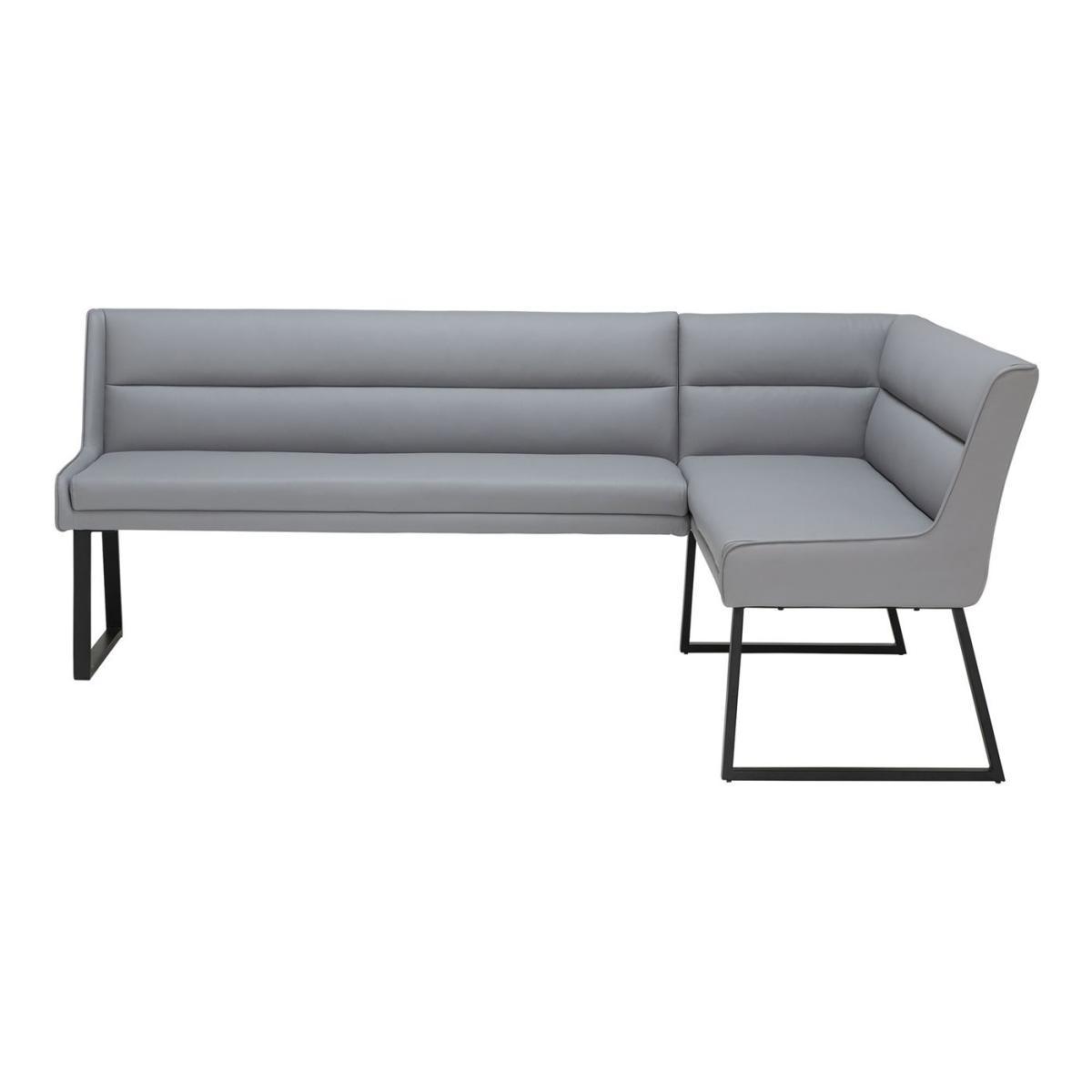 Design. Smartly designed and spacious enough for the whole family, our Ryker left hand facing corner bench is a comfortable seating choice for spending time around the dinner table. Upholstered in grey faux leather and set upon black metal legs, it has a distinctly modern look that will instantly update any dining room. This grey corner dining bench pairs perfectly with the Ryker ceramic dining table.