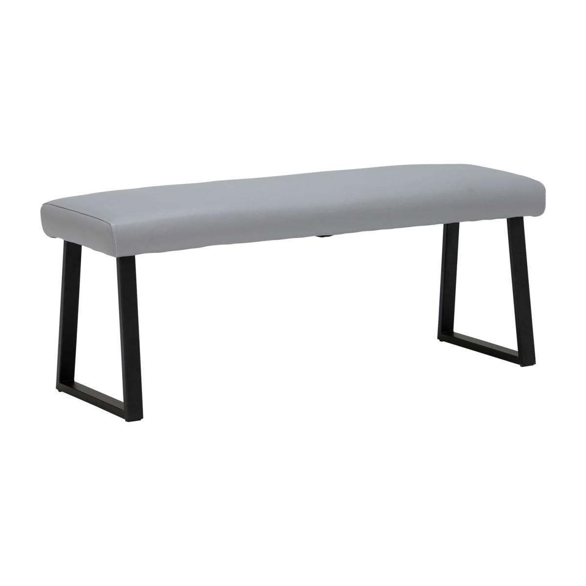 Beautifully dressed in smooth grey upholstery and finished with modern metal legs, the Ryker faux leather dining bench is simple yet stylish. Its foam seat ensures lasting comfort, while the monochrome look will work in a wide range of interiors. This sleek grey dining bench suits numerous table types and can be partnered with the matching corner dining bench.