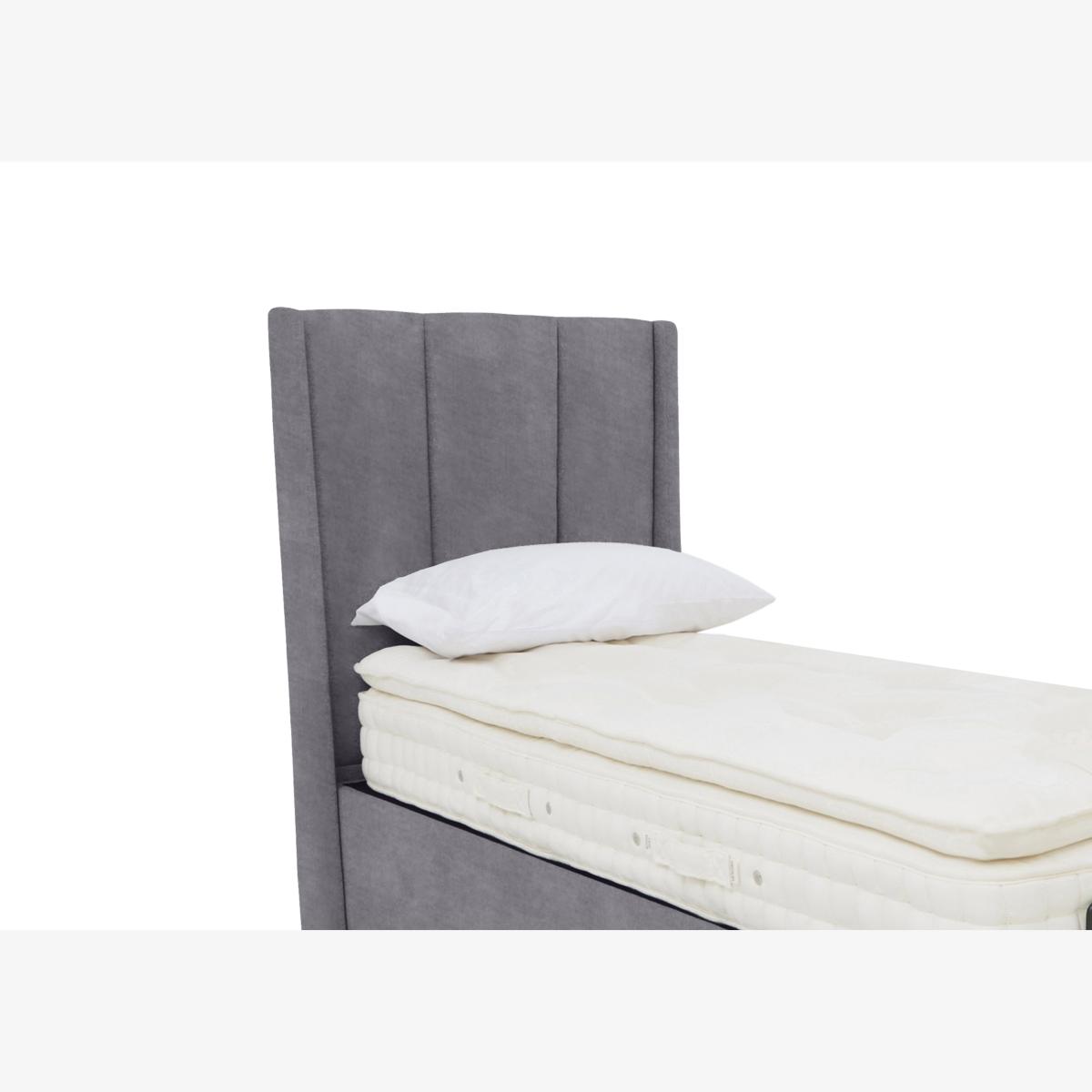 So elegant, so comfortable, so practical. The adjustable divan bases in our Ryo range are the perfect addition to any contemporary bedroom that’s focused on modern style and rejuvenating comfort. Each divan base comes complete with a tall winged headboard with understated fluting and each offers optional built-in storage drawers or ottoman storage. Bed bases are electric-powered for smooth, multi-position adjustability so it’s easy to find that perfect position whether you’re lying down or sitting up to watch TV. The range also includes dual adjustable bases and massage functionality. Designed and handcrafted exclusively for Furniture Village, the Ryo range is part of our E-Motion adjustable bed collection. Our Ryo floor standing headboard is a modern take on traditional headboard design. With gently winged sides and fluting, it’s so stylish. Handcrafted. Why you'll love it Elegantly curved headboard with subtle winged sides and fluting. Luxuriously upholstered from top to floor for a neatly finished appearance. Made with sustainable FSC-sourced wood. In a choice of beautiful fabrics. Handcrafted in the UK. This headboard is only available at Furniture Village. What you need to know Available in single, small double, double, king and super king sizes. Clean regularly using a soft brush or vacuum with the curtain attachment. Deal with any spills promptly. Professional cleaning advised for oil- and grease-based stains. Some fabrics can show wear on areas of more use or in direct sunlight.