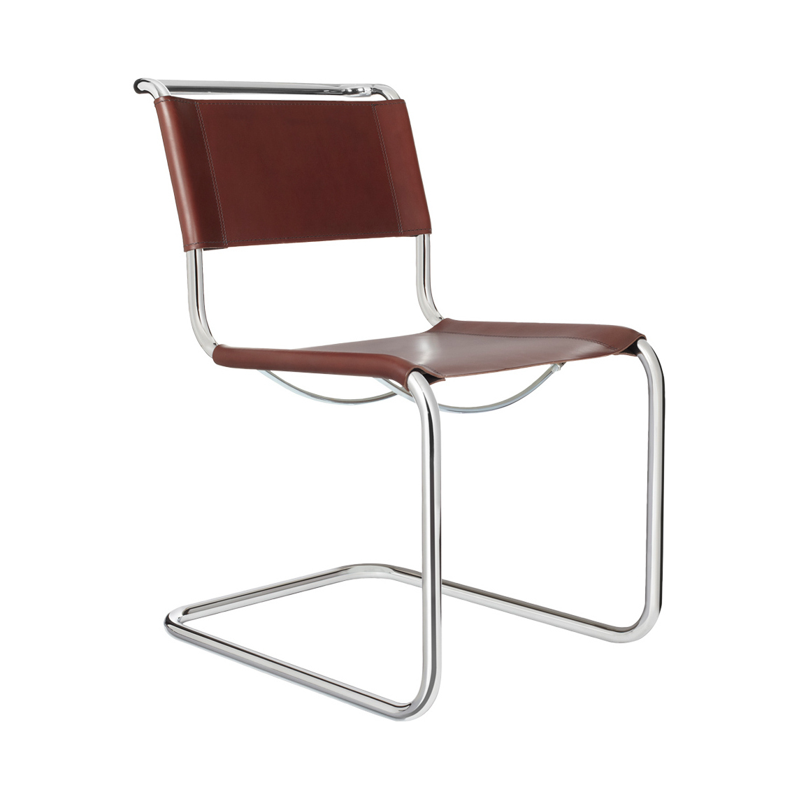 The first cantilever chair design in furniture history, the S 33 Chair in chocolate brown leather by Mart Stam has earnt its place in the design hall of fame. Originally designed in 1927 for the Weissenhof-Siedlung housing estate in Stuttgart, the S 33 Chair was inspired by gas pipes. Connecting the piping with flanges Mart Stam developed the principle of cantilevering chairs that no longer rest on four legs. Interestingly, at the time, Stam was not that interested in the flexing effect of bent tubular steel, a technique that would soon become instrumental in the Bauhaus school of design. Initially, his focus was on the simplicity of the form, which complemented perfectly the modern buildings of the time. Finished with elegant chocolate brown leather upholstery, the S 33 Chair is sure to lend a touch of modern design to any space.