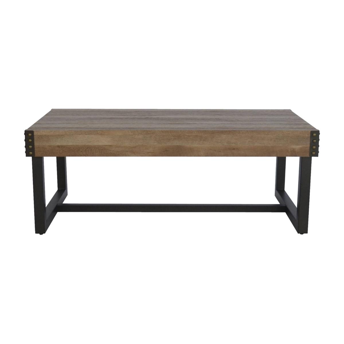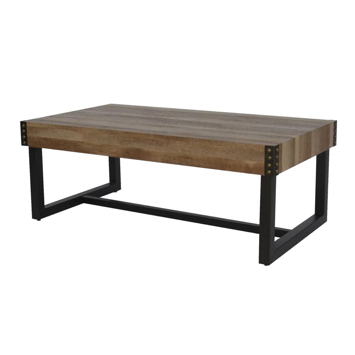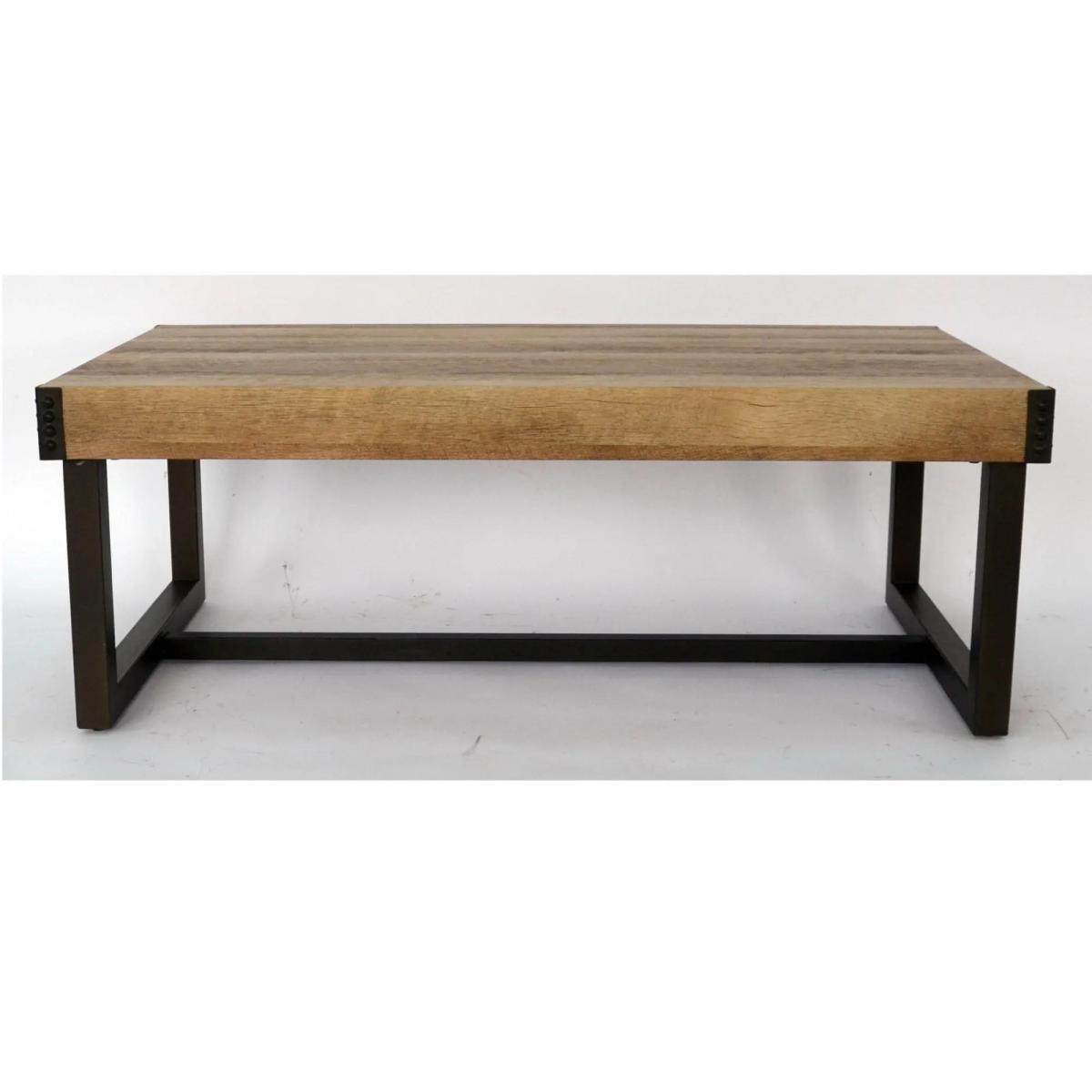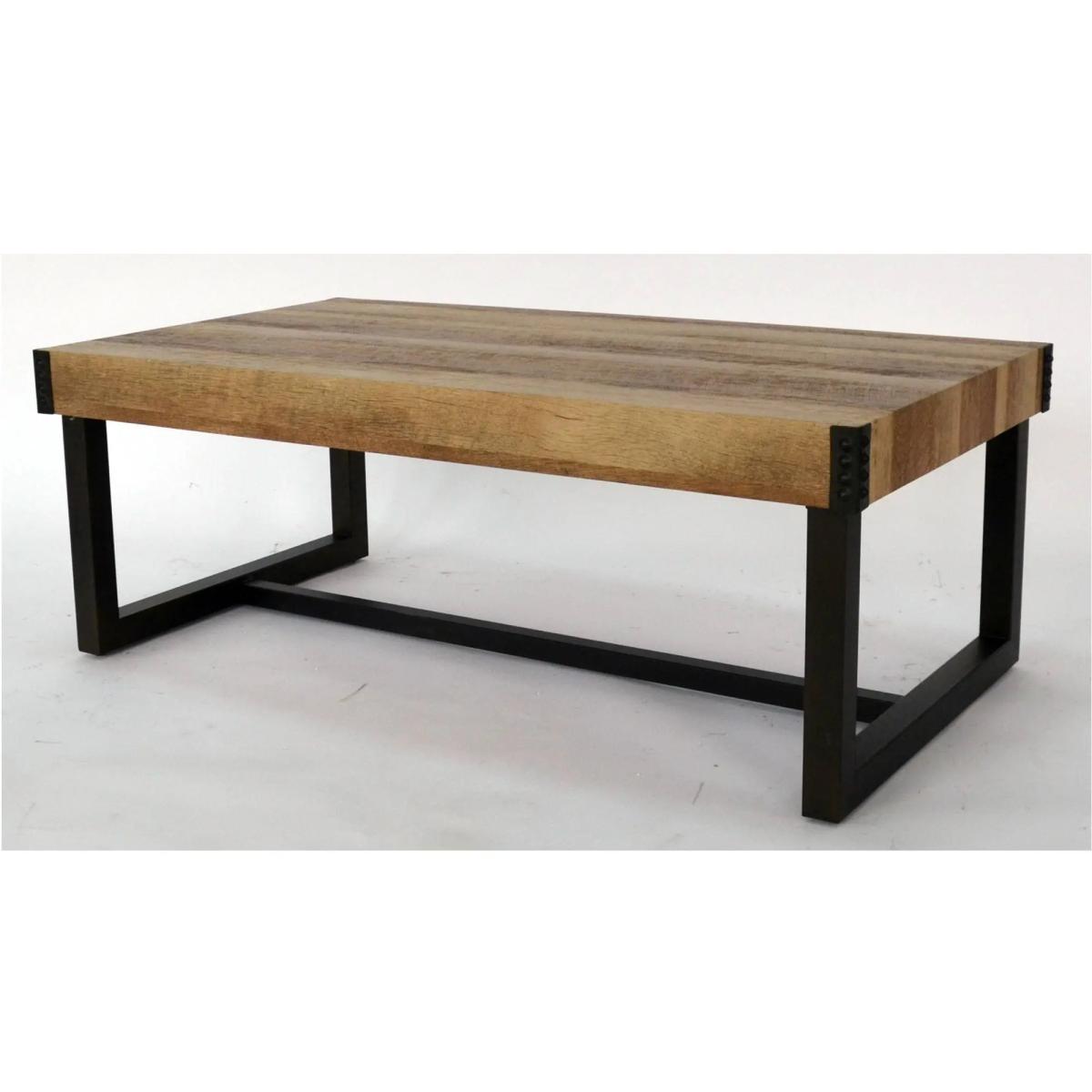 Industrial Wood and Metal Coffee Table.. The Saar Coffee Table is an industrial style coffee table featuring a wood block top with matt black painted frame and corners. By elegantly combining the wood finish top and raw look of the frame, this piece looks authentic and modern. A perfect addition for any neutral or industrial style interior.