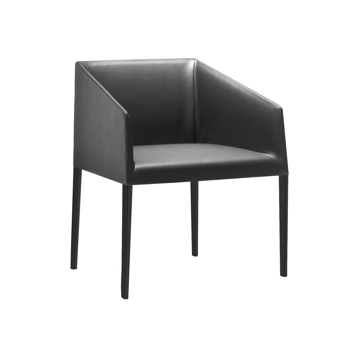 I love this leather armchair for its sleek, modern silhouette and versatile appeal. It works well in contemporary or minimalist interiors, adding a touch of sophistication without feeling overly formal. The padded arms and back make it comfortable for longer seating, so it’s great in dining rooms with a relaxed vibe or even in home offices. Practical styling tips include pairing it with a textured rug and layered textiles for contrast, or using it alongside a glass table for a clean, streamlined look. Its black leather finish makes it easy to mix and match with other colours and materials, making it a dependable choice for both everyday dining areas and more polished, stylish spaces.