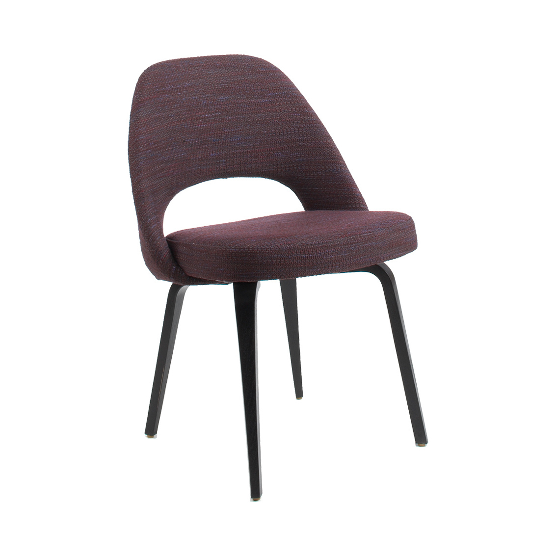 An iconic design by Eero Saarinen, the Conference Chair was first introduced in 1957 and revolutionised the notion of what executive seating could be. With simple semi-circular shaping and a streamlined silhouette, the Saarinen Conference Chair offers uncomplicated comfort through its fluid and sculptural form. Its contemporary style is accented by the tactile Rivington upholstery, which weaves together space-dyed yarns to create a multidimensional, soft edge to the clean-lined, modern design. Supported by four ebony-stained oak legs, the Conference Chair is awarded a rustic touch with the bold, deep hued grain of the wood, which contrasts beautifully to the rich hue of the upholstery. Ideal as a complementary chair for a contemporary dining table, or a perfect seat for guests, the Saarinen Conference Chair presents a stylish design combined with minimalist style, and is still to this day manufactured by renowned design house Knoll.