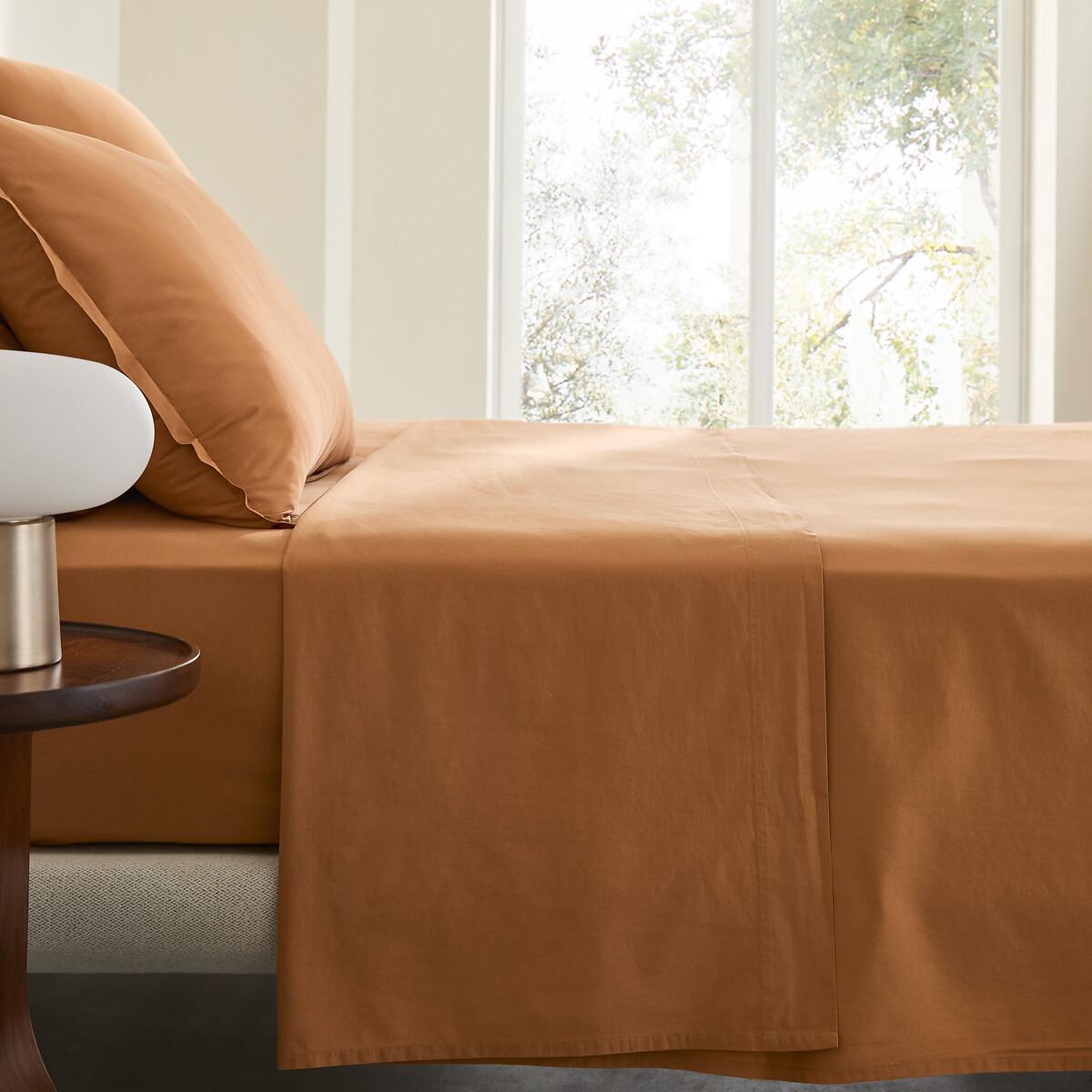 Made in Portugal from washed cotton percale, the Sabbal flat sheet combines softness, strength and elegance. Its crumpled effect ensures comfort and modernity. Soft, easy-care bed linen in a range of timeless colours. Product Details • Washed percale • 100% cotton • Organic cotton • 300 Thread Count: a common indicator for measuring the quality of fabric is the number of threads per cm². Different sensations are made possible thanks to the weaving and the number of threads present. Indeed, an optimal number of threads makes the bed linen particularly soft. Care Advice Follow our care tips to maintain the quality of your laundry • Machine washable at 40°C • Tumble dry at low temperature • Iron at average temperature • Do not dry clean. Dimensions • 180 x 290cm: Single • 240 x 300cm: King • 270 x 310cm: King • MADE IN PORTUGAL. • Cotton from organic farming. Organic farming does not use any chemicals, pesticides, insecticides or GMOs. Produced with minimal impact on biodiversity. • OEKO-TEX® Standard 100. Standard 100 certification by OEKO-TEX® tests textile products for harmful substances via an independent, international label.