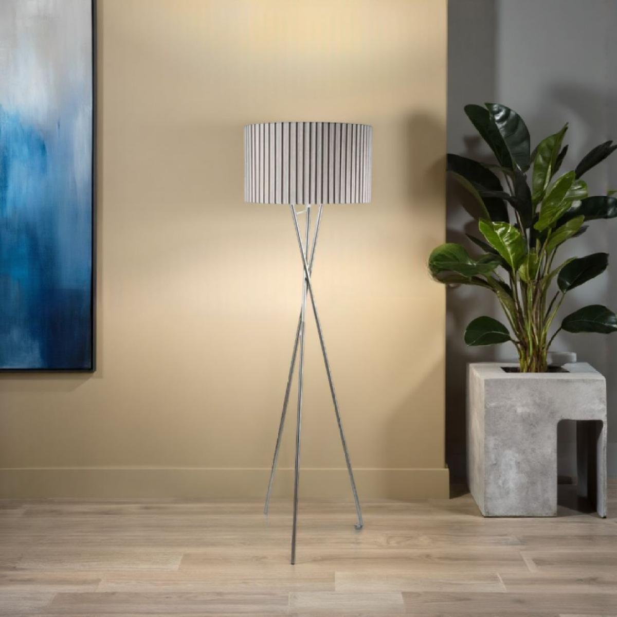 Contemporary floor lamp boasting a satin nickel base, complete with a taupe shade. An elegant addition to your home, this floor lamp is part of the Sabella range from Pagazzi Lighting. Boasting a satin nickel tripod base, it has been paired with a taupe fabric lamp shade. Operated using a footswitch, it is perfect for use in lounges, hallways and bedrooms. Contemporary floor lamp boasting a satin nickel base, complete with a taupe shade. An elegant addition to your home, this floor lamp is part of the Sabella range from Pagazzi Lighting. Boasting a satin nickel tripod base, it has been paired with a taupe fabric lamp shade. Operated using a footswitch, it is perfect for use in lounges, hallways and bedrooms.
