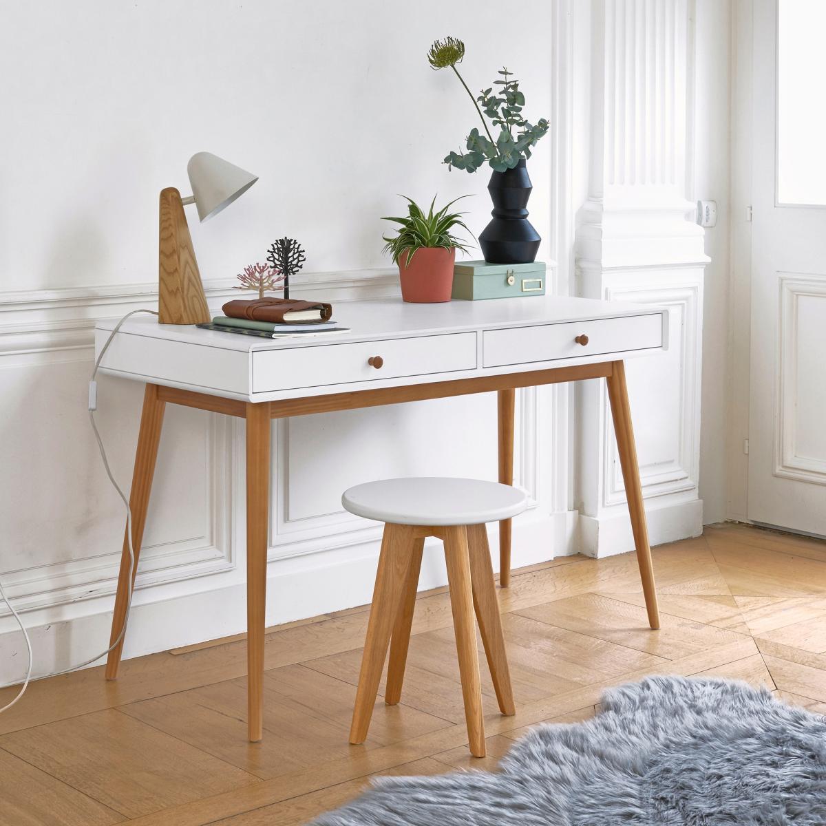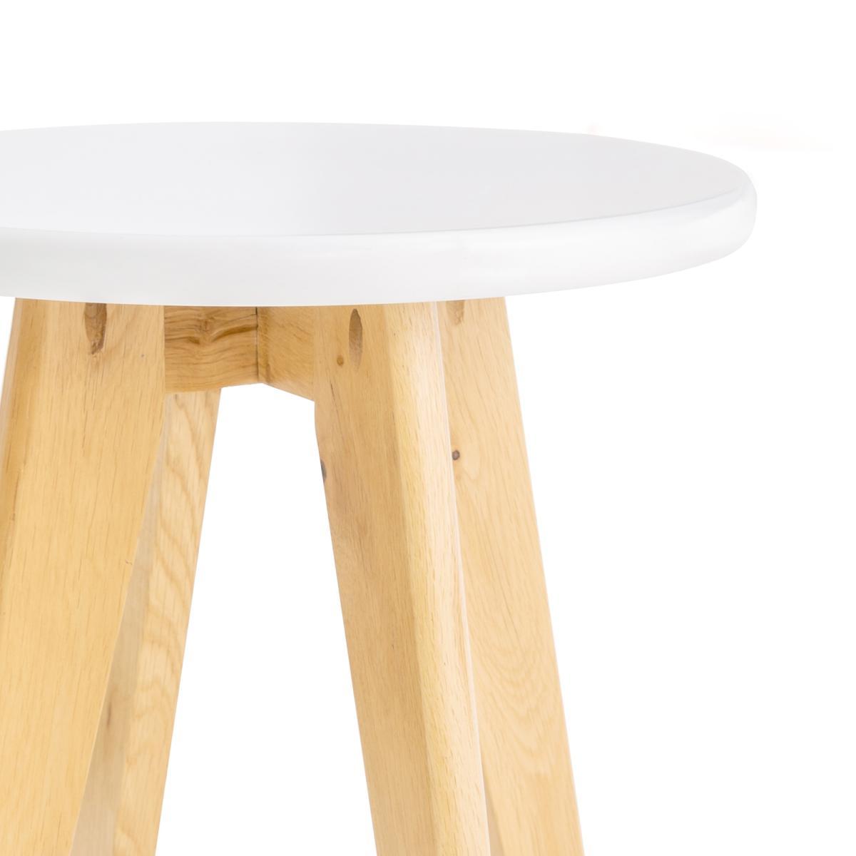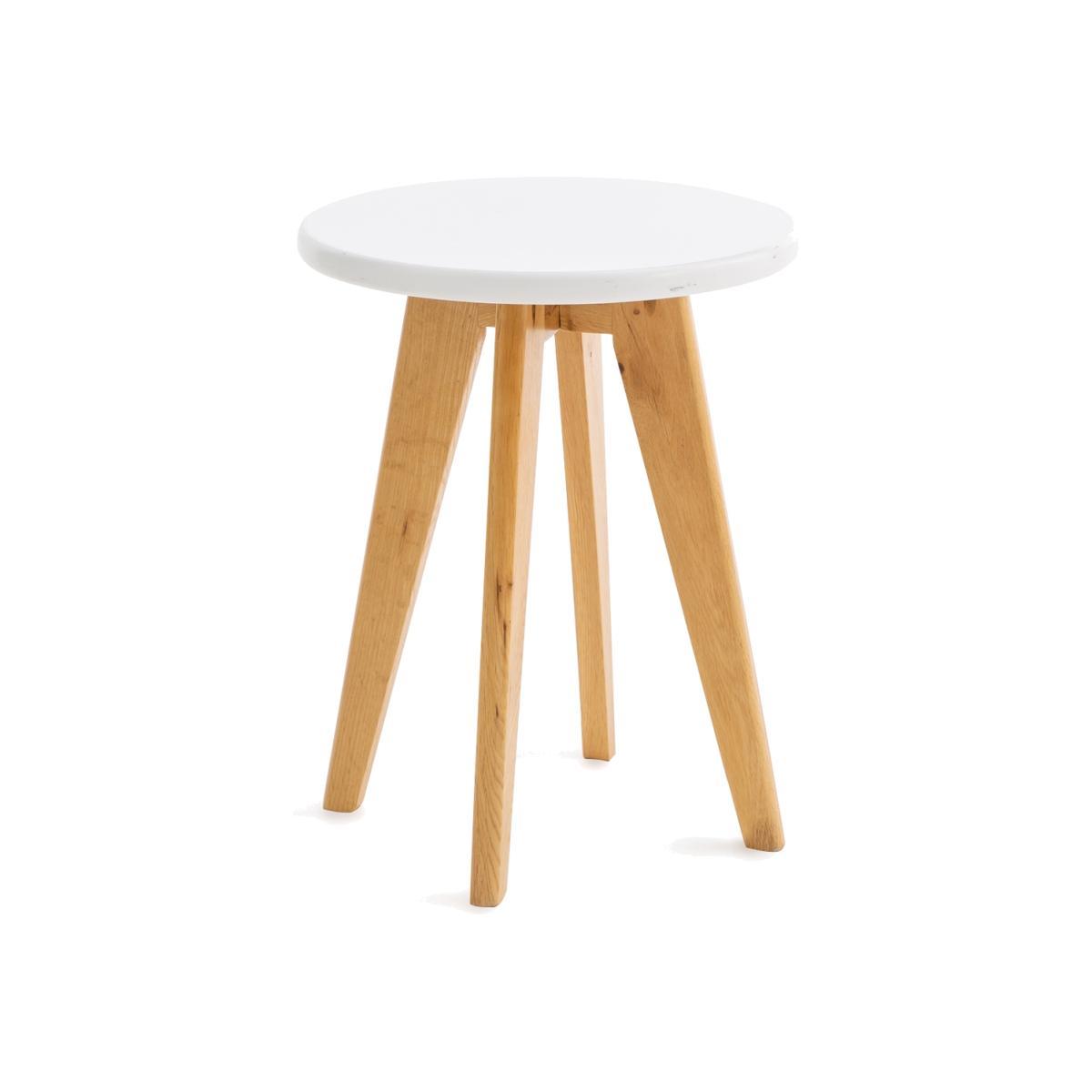 I love this little stool for its simple, Scandinavian-inspired design-it's versatile and easy to integrate into various interiors. The combination of a minimalist white seat with natural wooden legs makes it suitable for both contemporary and more rustic, cosy settings. It works particularly well in kitchens as an extra seat or side table, and can also serve as a lovely stool for a dressing area or reading nook. For styling tips, consider pairing it with soft textiles or layered natural materials to soften its clean lines, and don't be afraid to mix and match with other wooden or neutral-toned pieces for a cohesive, understated look. Its compact size and straightforward design make it a practical yet stylish addition to many spaces.
