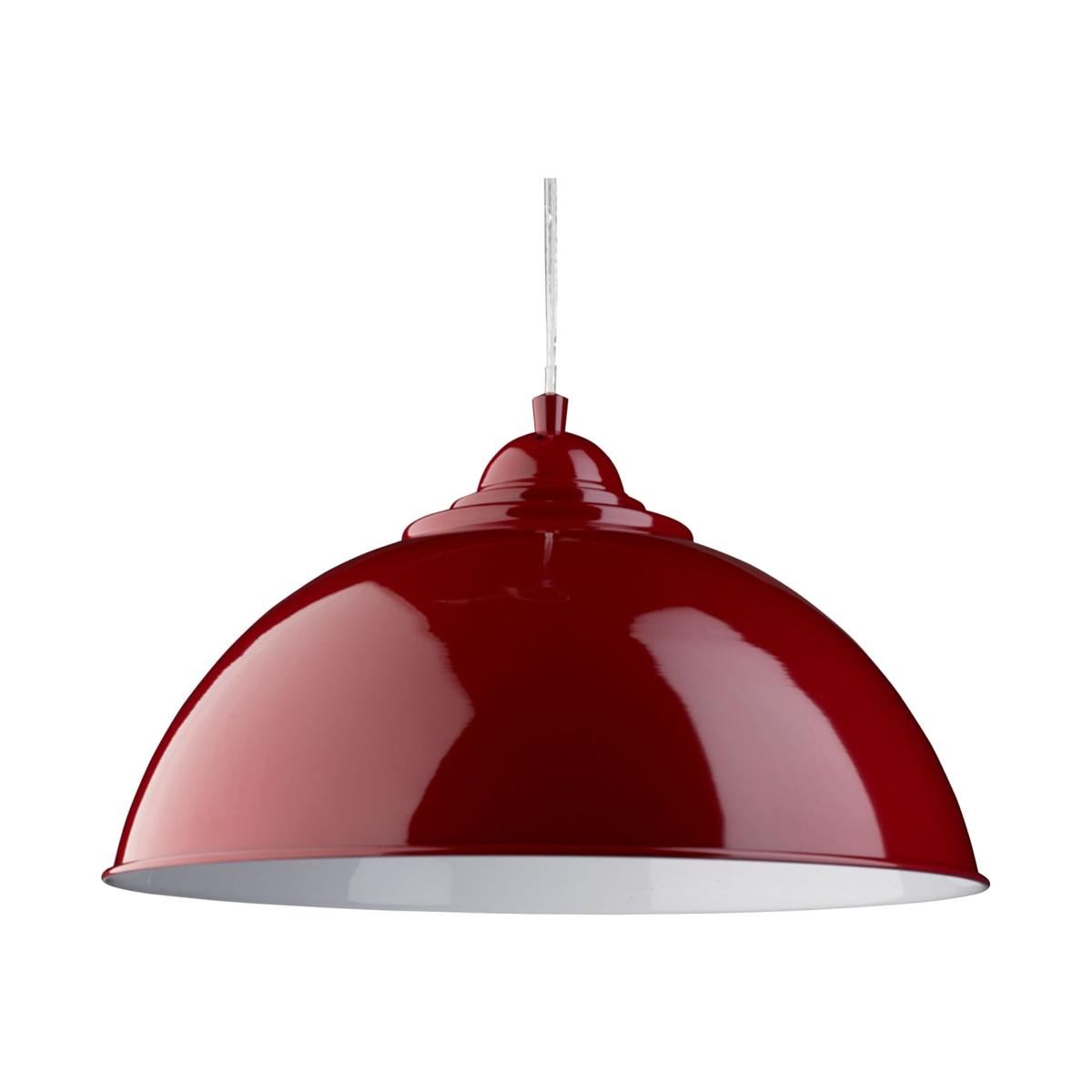 This red half dome pendant will add a pop of colour to any modern living space. The shiny red shade has a contrasting white inner which reflects the light beautifully, and this simple yet stylish shade would be a great addition to any kitchen or dining room. The wire suspension can easily be adjusted to the perfect ceiling height.