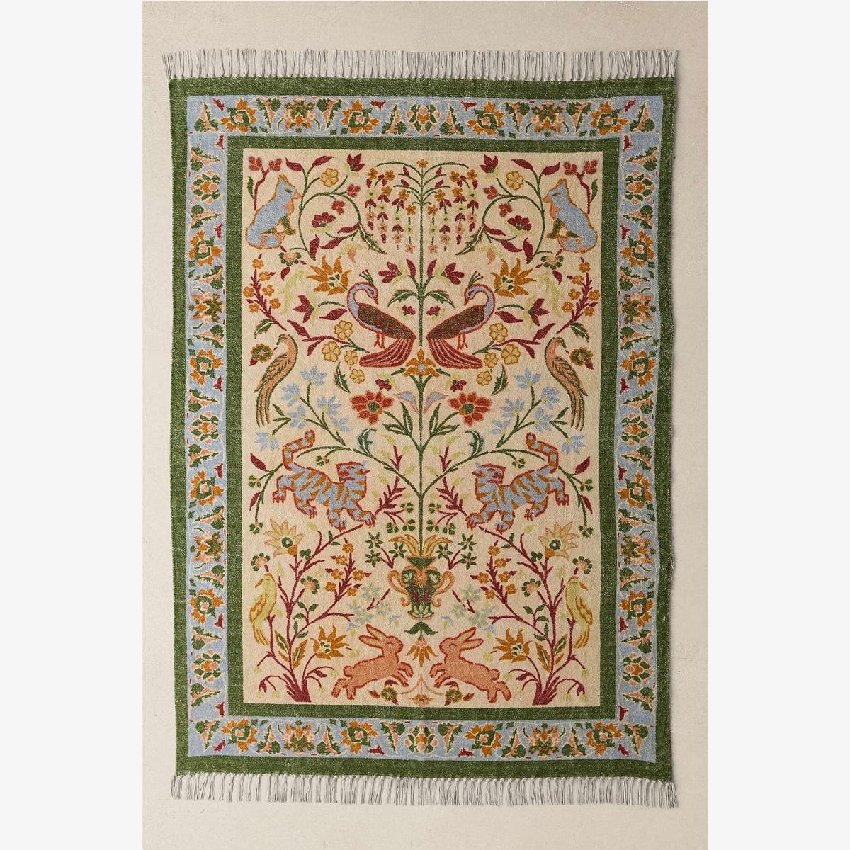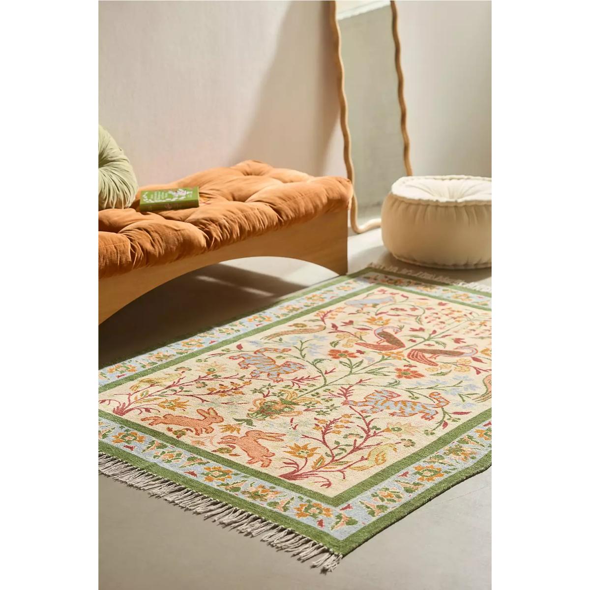 Vibrant floral rug topped with a whimsical nature-inspired design. Crafted from cotton with fringed edges, perfect for elevating and adding warmth to any floorspace. **Content + Care** \- 100% Cotton \- Spot clean **Size** \- 5x7: 152.4cm x 213.3cm