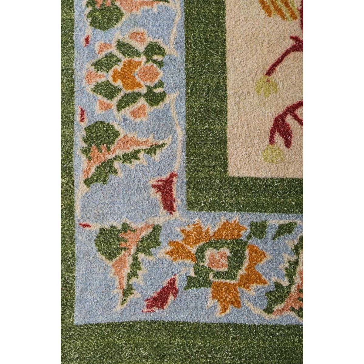 The Sabine Pine Rug is a great choice for adding a touch of colour and pattern to both traditional and eclectic interiors. Its vibrant palette and detailed motif make it a statement piece that can anchor a seating area or add personality to a bedroom. I love pairing it with neutral furnishings to let the rug stand out, or layering it over solid-colour carpets for a more layered look. Practical styling tips include placing it under a coffee table with the front legs on the rug to highlight its detailed border, or using it as a focal point in a light-filled dining space. Its size makes it versatile enough for living rooms or larger bedrooms, and because of its lively pattern, it works well in spaces designed with a mix of modern and vintage pieces.