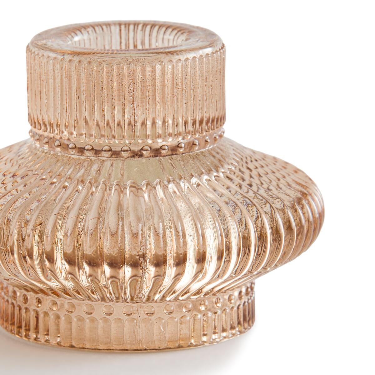 Elegant, with a vintage style. The Sabri candle holder adopts the decorative trend of ribbed glass, available in colour. It highlights your candles and brings a touch of sparkle to the everyday table, for a romantic dinner or for a family meal. Display alone or combined with other candle holders in the range. Product Details • In coloured streaked glass • For 2cm diameter candle (not supplied), sold on our site. Dimensions • Height: 5.7cm • Diameter: 5.1/7.8cm