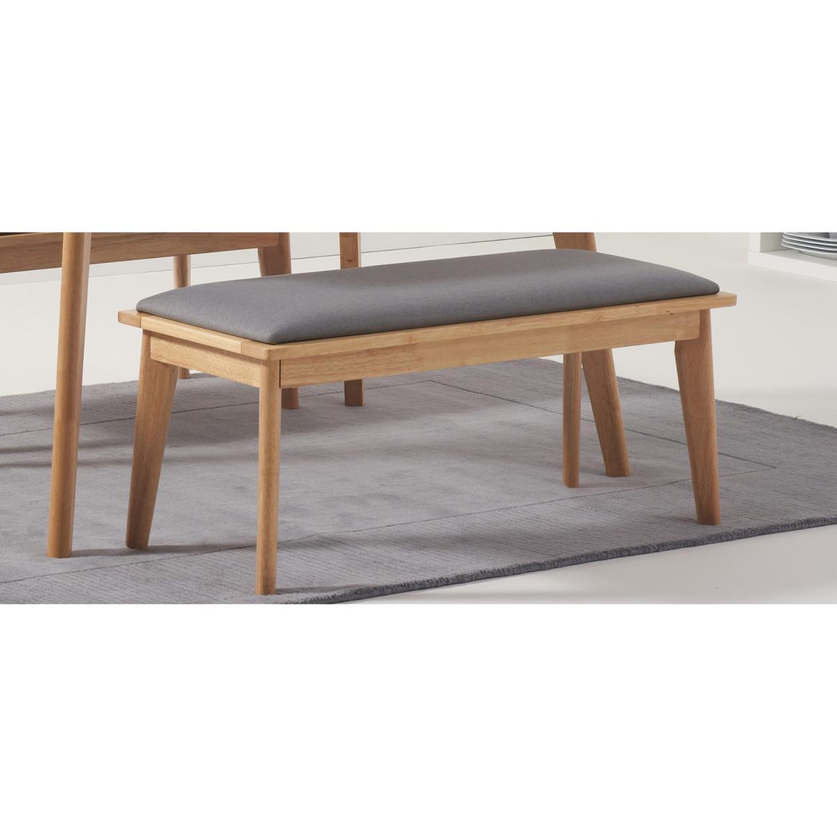 Featuring a soft grey fabric and light oak colour combo, the stylish Sacha Bench boasts a charmingly minimal design, perfectly matching the Sacha 120cm Extending Dining Table in colourway and style. With a sleek and softly padded cushioned seat, slim tapered rubberwood legs and a length that matches that of two Sacha chairs. We love: Styled with the Sacha Grey and Oak 120cm Extending Dining Table, and the Sacha Grey and Oak Chairs. Available as a set with: The Sacha Extending Dining Table and 2 Sasha Benches, the Sacha Table and 1 Sacha Bench and Sacha Chairs
