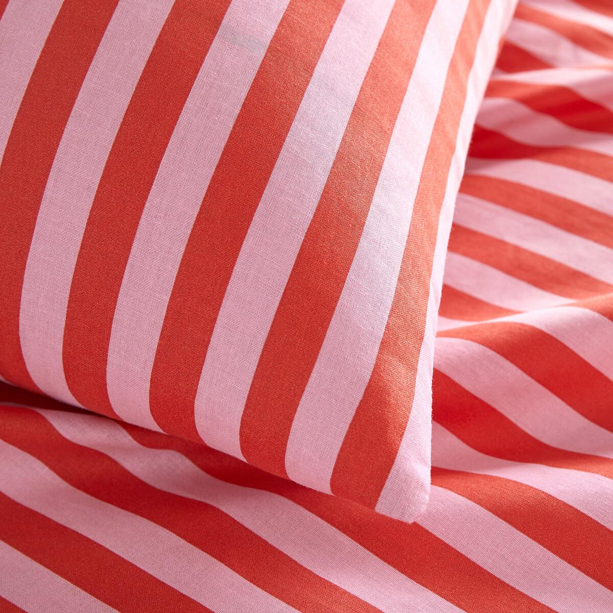 A vibrant world, where striped prints come together in monochrome shades. Sacha Pink, Sacha Vert... contemporary duvet sets to mix and match to your heart's content. Designed by La Redoute Intérieurs. Cotton is part of our daily lives. We love it for its suppleness and softness. Easy Care, it is ideal for the beds of young and old alike!Product Details • 100% cotton, 115g/m2 • Contains 50% recycled cotton • 144 thread count • Striped print both sides • Straight buttoned hem. As the seasons change, add your own personal touch by mixing the Sacha range with our range of Scénario plain cotton bed linen. Care Advice • Machine washable at 40°CDimensions • Duvet cover 140 x 200cm + 1 rectangular pillowcase 50 x 70cm: Single • Recycled cotton. Using recycled cotton is all about conserving resources and reducing waste. • OEKO-TEX® Standard 100. Standard 100 certification by OEKO-TEX® tests textile products for harmful substances via an independent, international label.