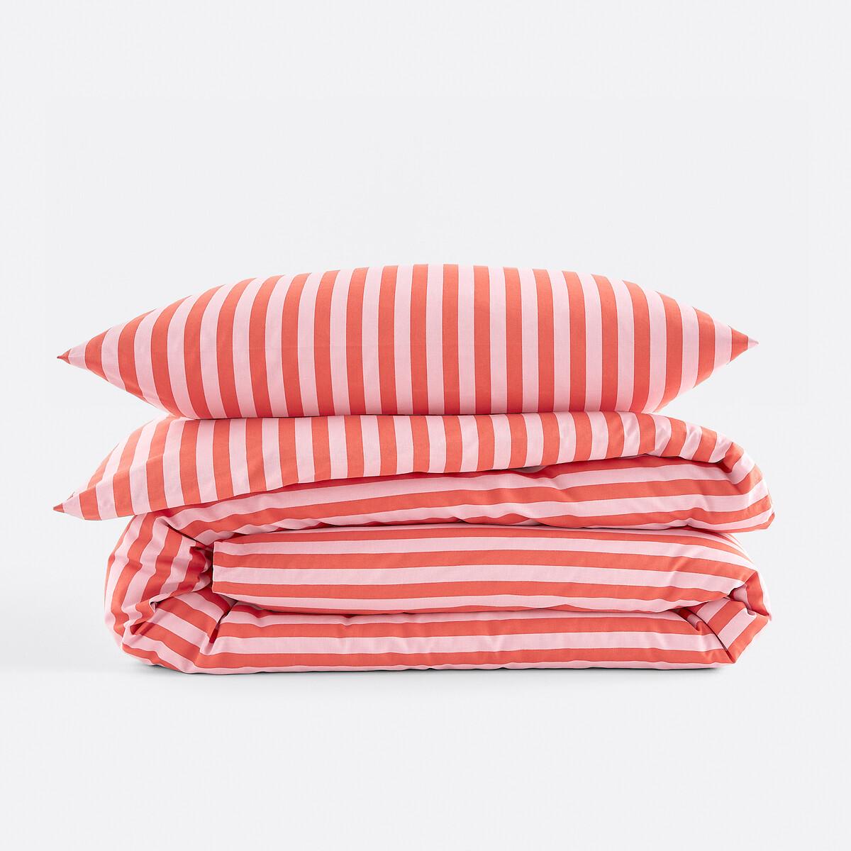 A vibrant world, where striped prints come together in monochrome shades. Sacha Pink, Sacha Vert... contemporary duvet sets to mix and match to your heart's content. Designed by La Redoute Interiors. Cotton is part of our daily lives. We love it for its suppleness and softness. Easy Care, it is ideal for the beds of young and old alike!Product Details • 100% cotton, 115g/m2 • Contains 50% recycled cotton • 144 thread count • Striped print both sides • Straight buttoned hem. As the seasons change, add your own personal touch by mixing the Sacha range with our range of Scénario plain cotton bed linen. Care Advice • Machine washable at 40°CDimensions • Duvet cover 140 x 200cm + 1 rectangular pillowcase 50 x 70cm: Single • Recycled cotton. Using recycled cotton is all about conserving resources and reducing waste. • OEKO-TEX® Standard 100. Standard 100 certification by OEKO-TEX® tests textile products for harmful substances via an independent, international label.