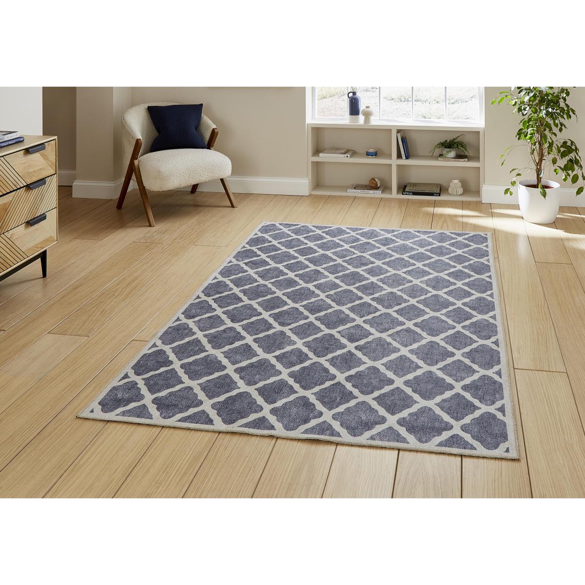 This durable and stylish rug features a striking geometric pattern and is offered in a choice of colours. With its flatweave finish, it’s very much on trend. All that and it’s machine washable too. Why you'll love it Modern washable rug with a timeless geometric pattern. Statement style in a wide choice of colourways and sizes. So easy to keep clean – it’s machine washable. Durable flatweave finish with a soft, shallow pile. Non-slip backing keeps it firmly in place. Environmentally friendly – it’s made with recycled materials. Striking digitally printed design. Ideal for homes with children and pets. Also available as a runner. This rug is part of the Furniture Village home accessories collection. What you need to know Polyester, recycled materials. For indoor use only. Machine washable. Item code: SACHRUG1GRY-001