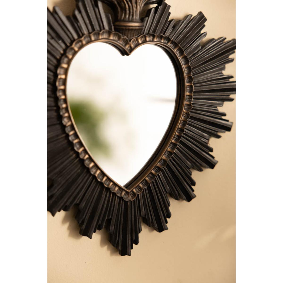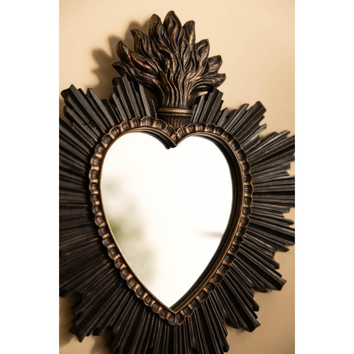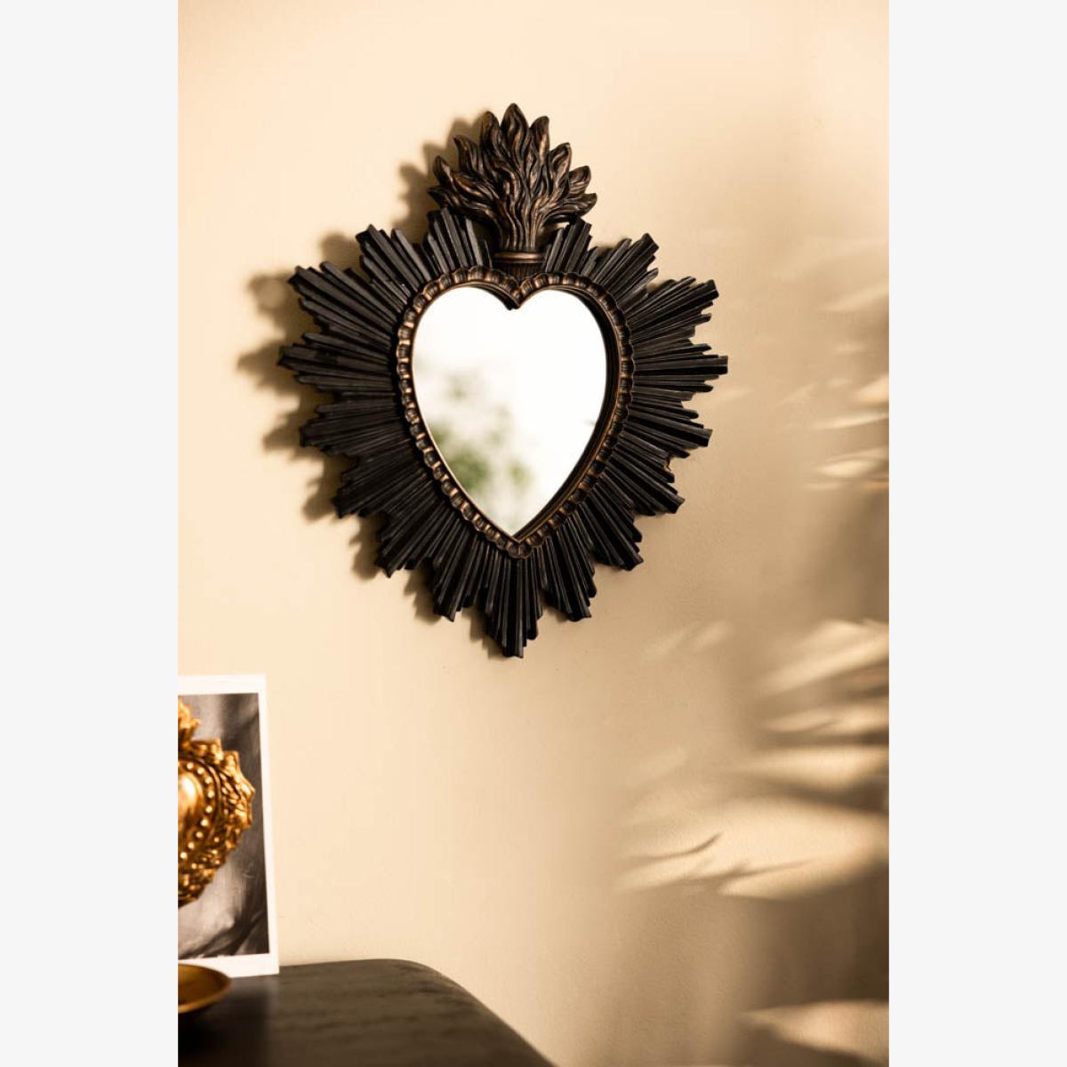 Say hello to your new obsession – the Sacred Heart Black Frame Decorative Mirror. Cool, dark, and unapologetically dramatic, this decorative wall mirror serves gothic glam meets divine design. The striking heart shape, surrounded by radiant rays and topped with a sculpted flame, makes it the perfect statement for anyone who likes their décor with a little attitude. This black mirror is sophisticated, bold, and totally captivating – the kind of mirror that doesn’t just reflect your face, but your fabulous energy. Hang it in your hallway, above your bar cart, or anywhere you want a touch of dark romance. - Sacred Heart Black Frame Decorative Mirror - Measures:W26cm x H30.5cm x D3cm - Materials: Resin & Glass