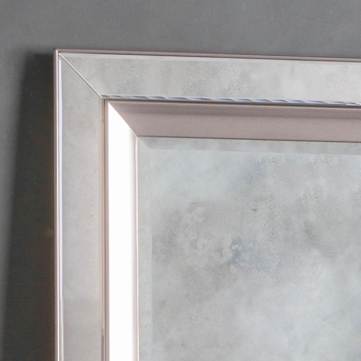 Stylish and sophisticated wall mirror featuring bevelled mirror pieces and a silver finish surround and inset for a double frame effect. Matching leaner mirror and set of 4 small mirrors also available. Shape: Rectangle. Material: Glass, PS. Colour/Finish: Silver. Mount Type: Wall.