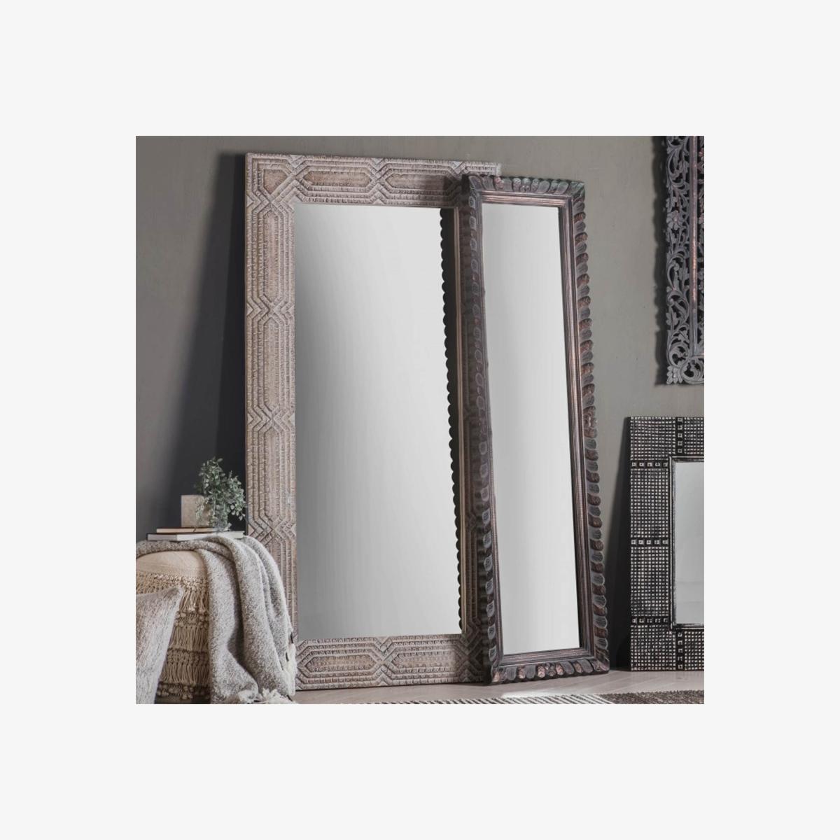 Shape: Rectangle. Material:Glass / MDF / Metal / Wood. Colour/Finish: Natural / Whitewash. Large leaner mirror with a beautifully decorative wooden frame with a washed finish.