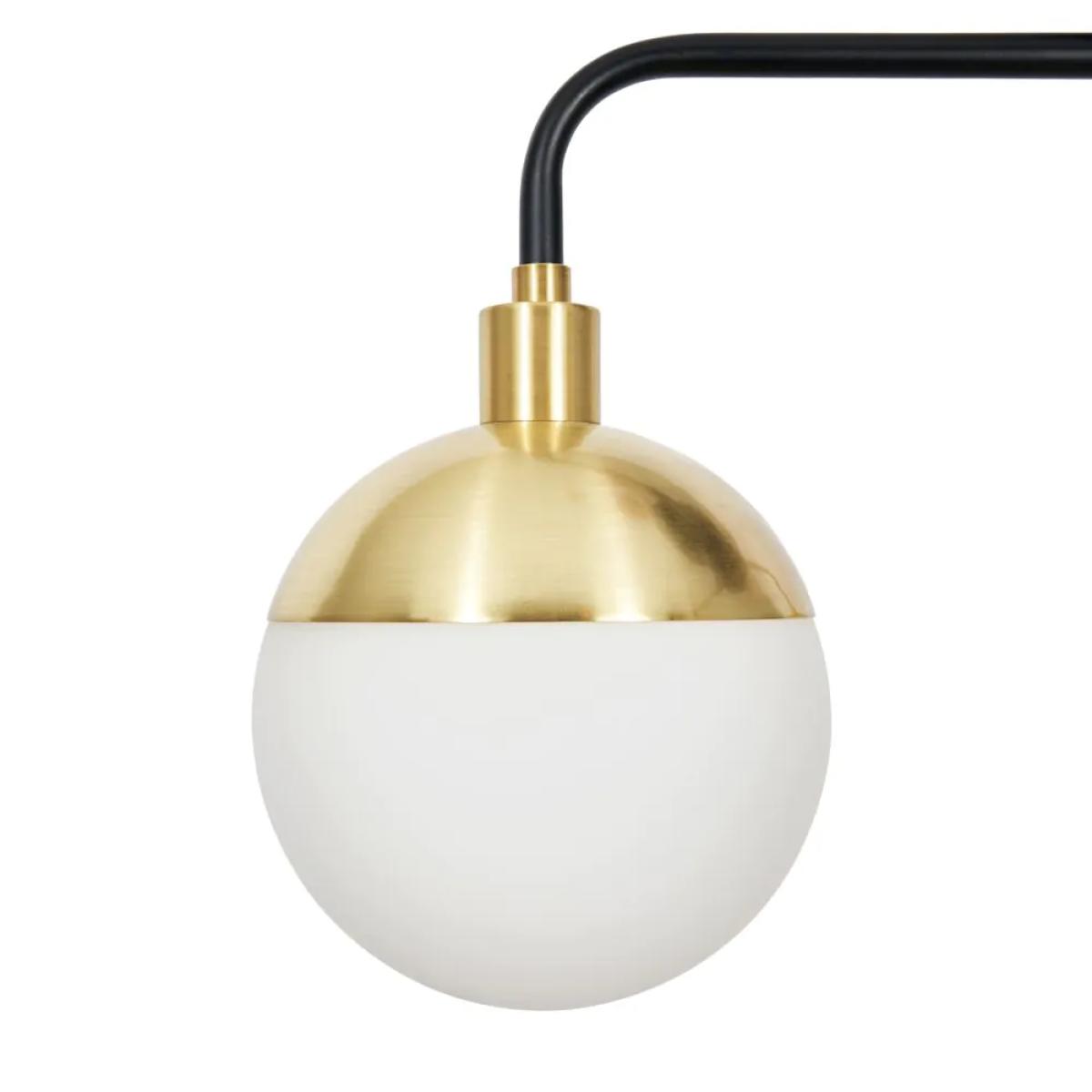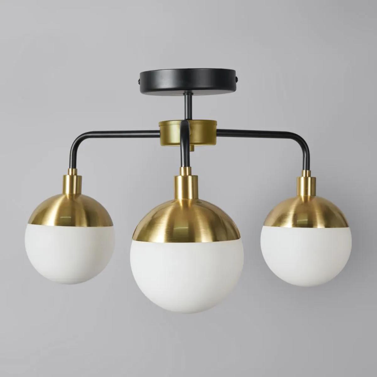 I love this semi-flush fitting for adding a touch of modern sophistication to bathroom interiors. The black and brass combo is versatile, working well in both contemporary and vintage-inspired spaces. It’s particularly suited to rooms with darker colour palettes or natural materials, where it can act as a statement piece without overpowering the overall look. Practical styling tips include hanging it in a bathroom with high ceilings for better proportion, or positioning it above a freestanding vanity to enhance task lighting. Pairing it with matte black fixtures and textured finishes will help create a cohesive, stylish scheme that feels both luxurious and functional.